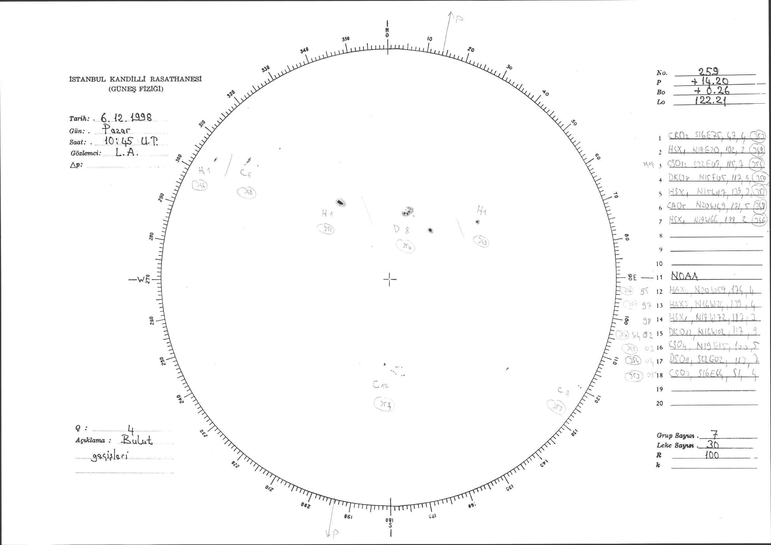 Güneş Lekesi Çizimi - 06.12.1998