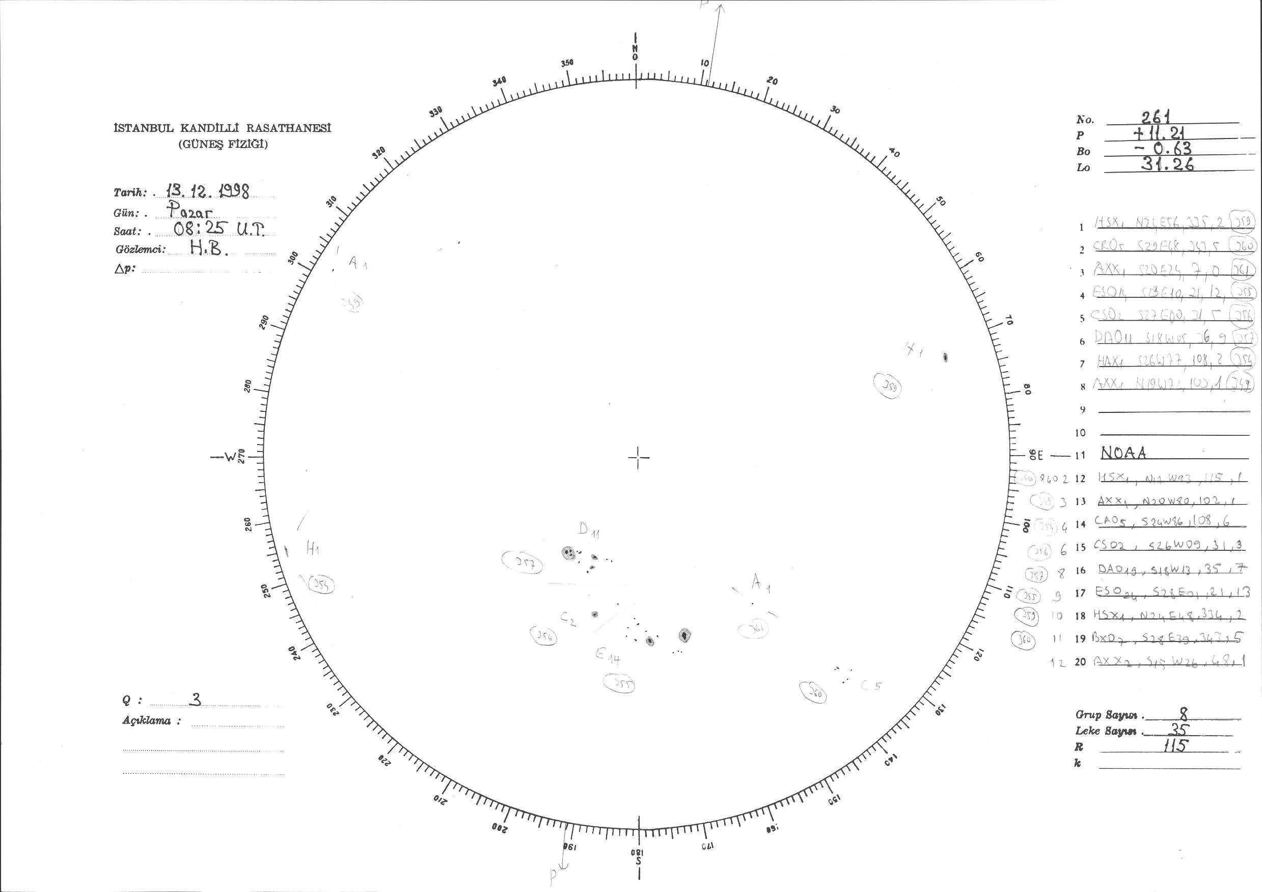 Güneş Lekesi Çizimi - 13.12.1998