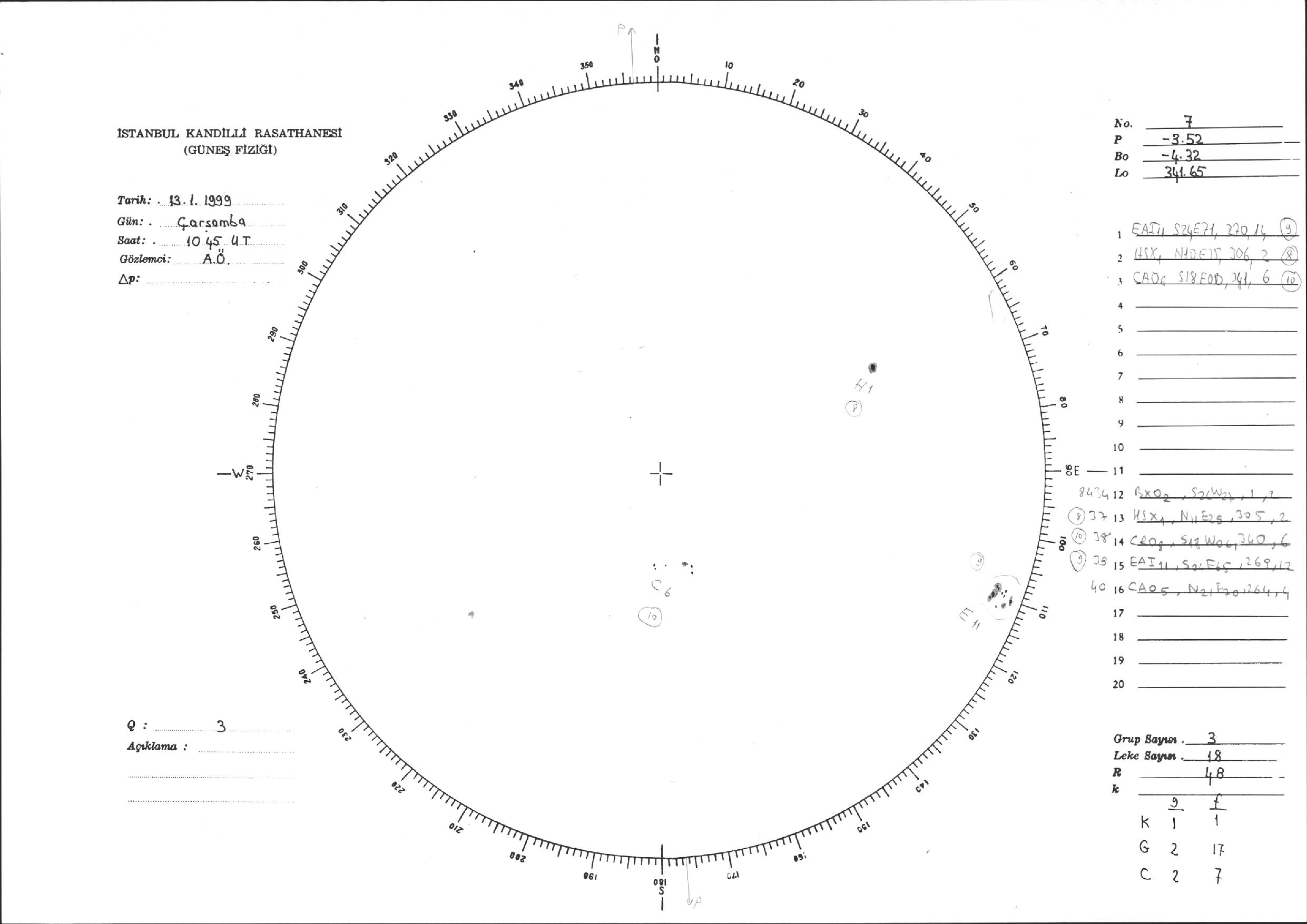 Güneş Lekesi Çizimi - 13.01.1999