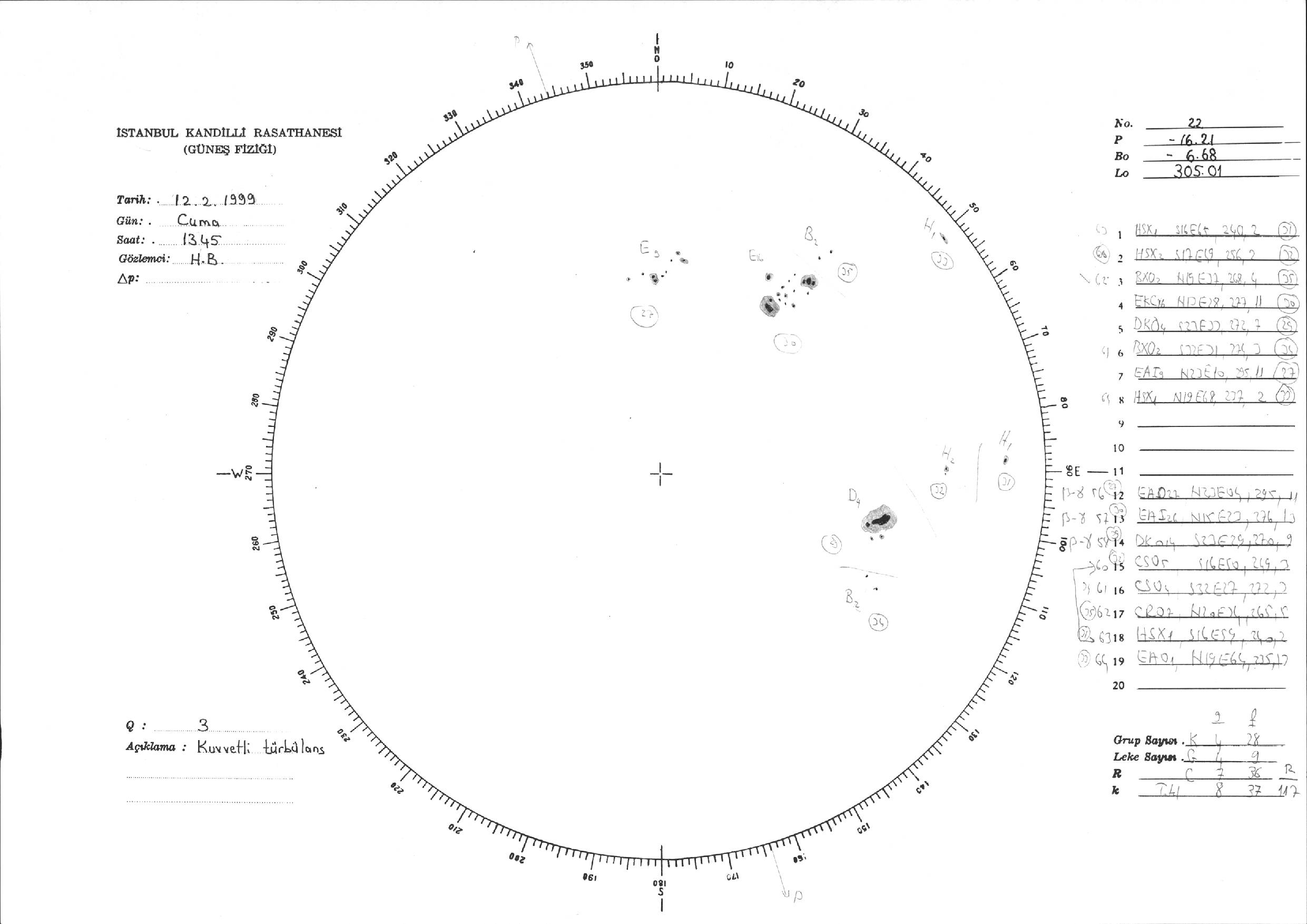 Güneş Lekesi Çizimi - 12.02.1999