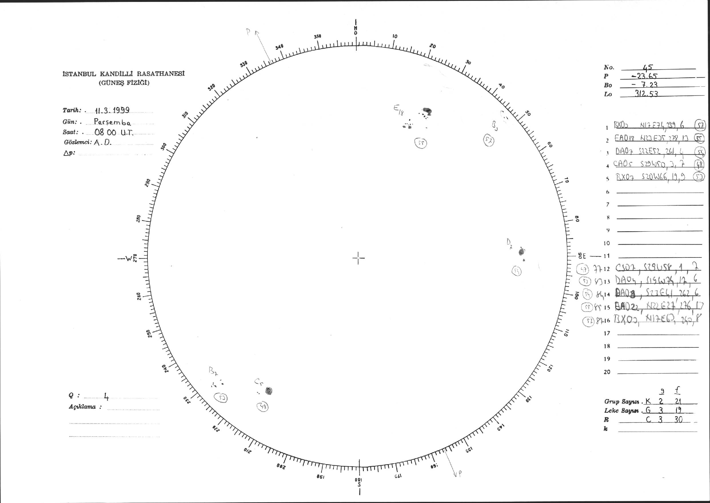 Güneş Lekesi Çizimi - 11.03.1999