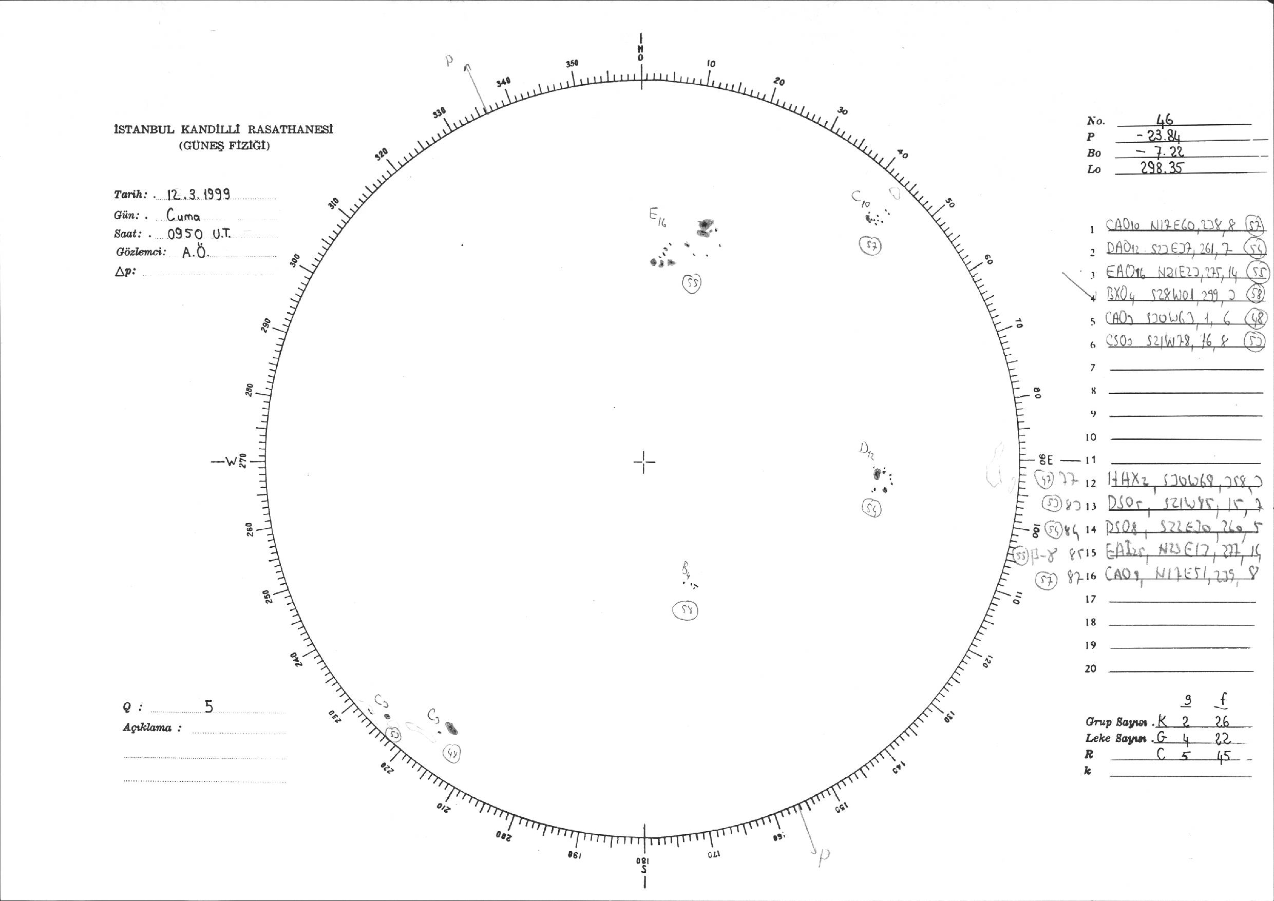 Güneş Lekesi Çizimi - 12.03.1999