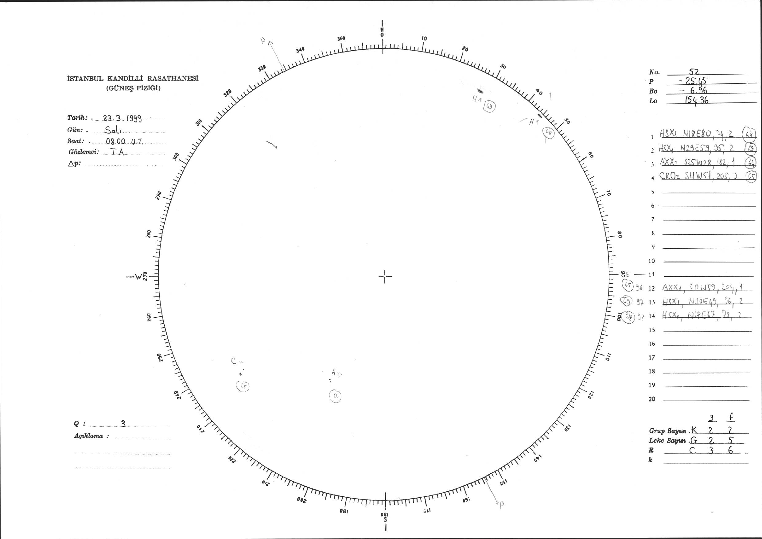 Güneş Lekesi Çizimi - 23.03.1999