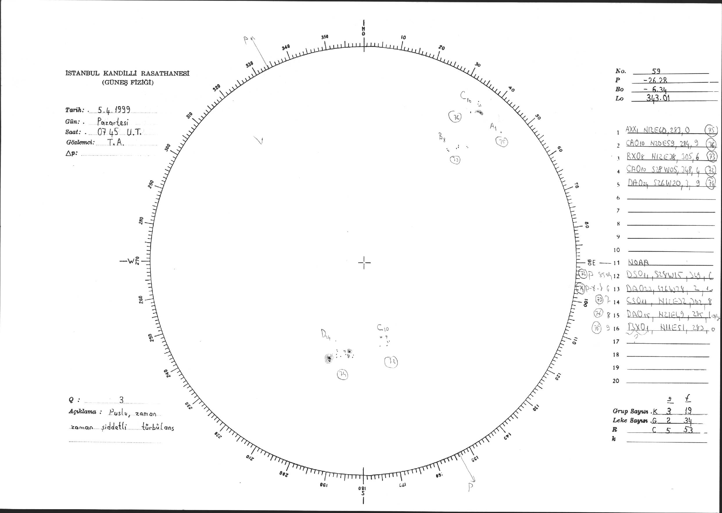 Güneş Lekesi Çizimi - 05.04.1999