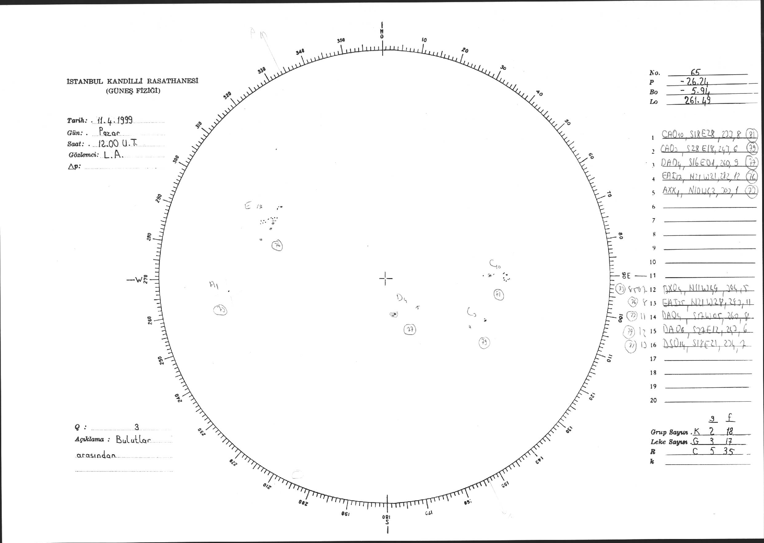Güneş Lekesi Çizimi - 11.04.1999