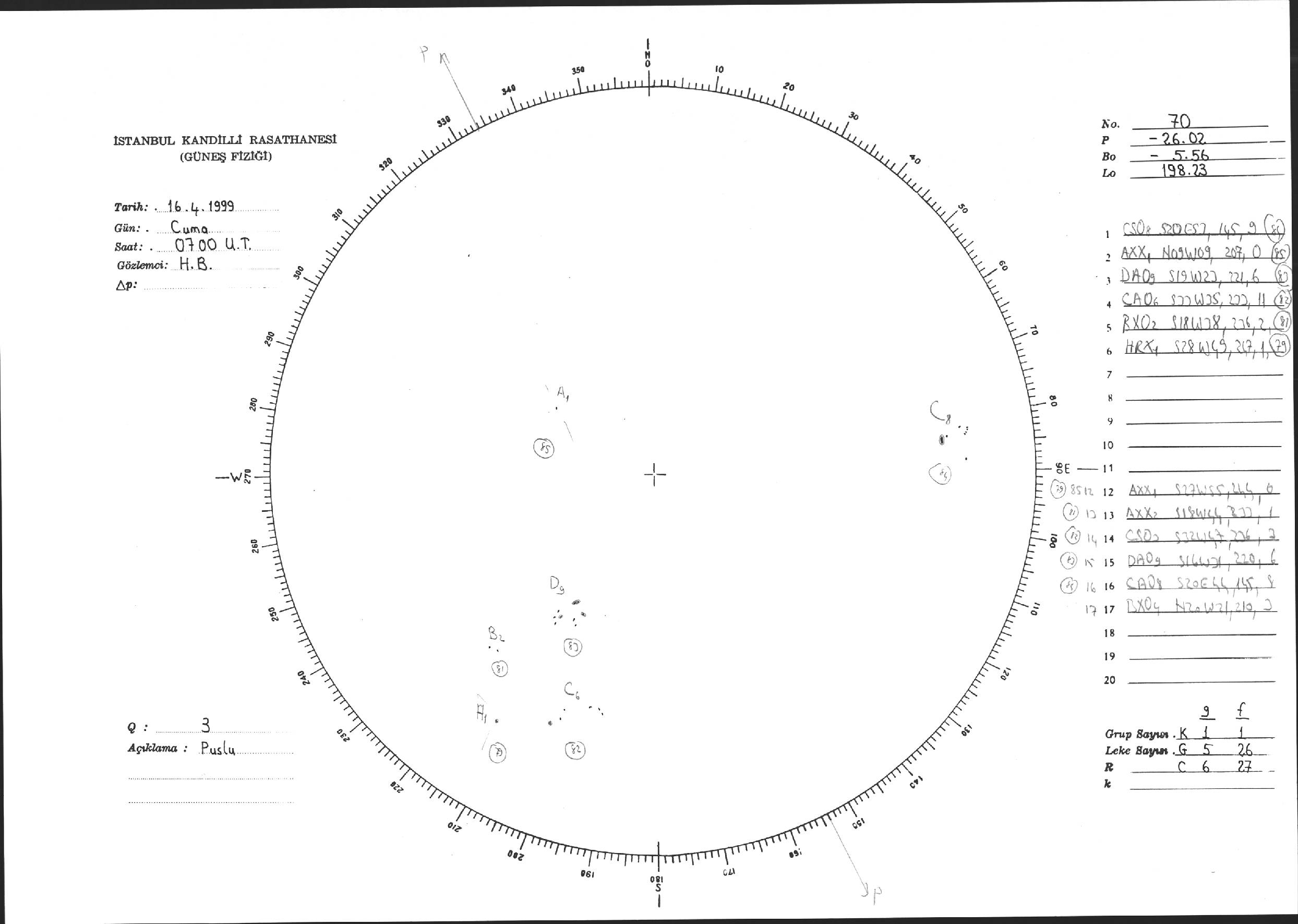 Güneş Lekesi Çizimi - 16.04.1999
