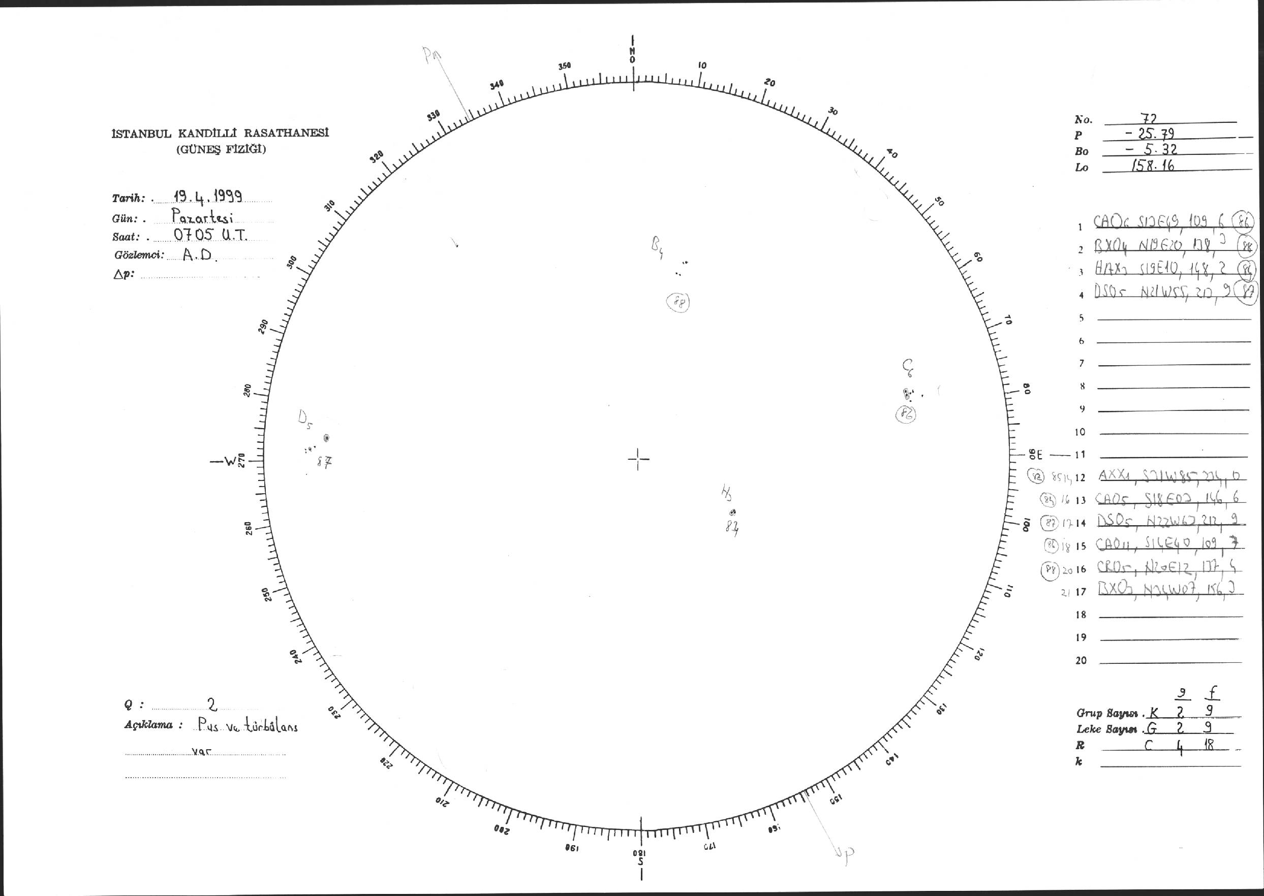 Güneş Lekesi Çizimi - 19.04.1999