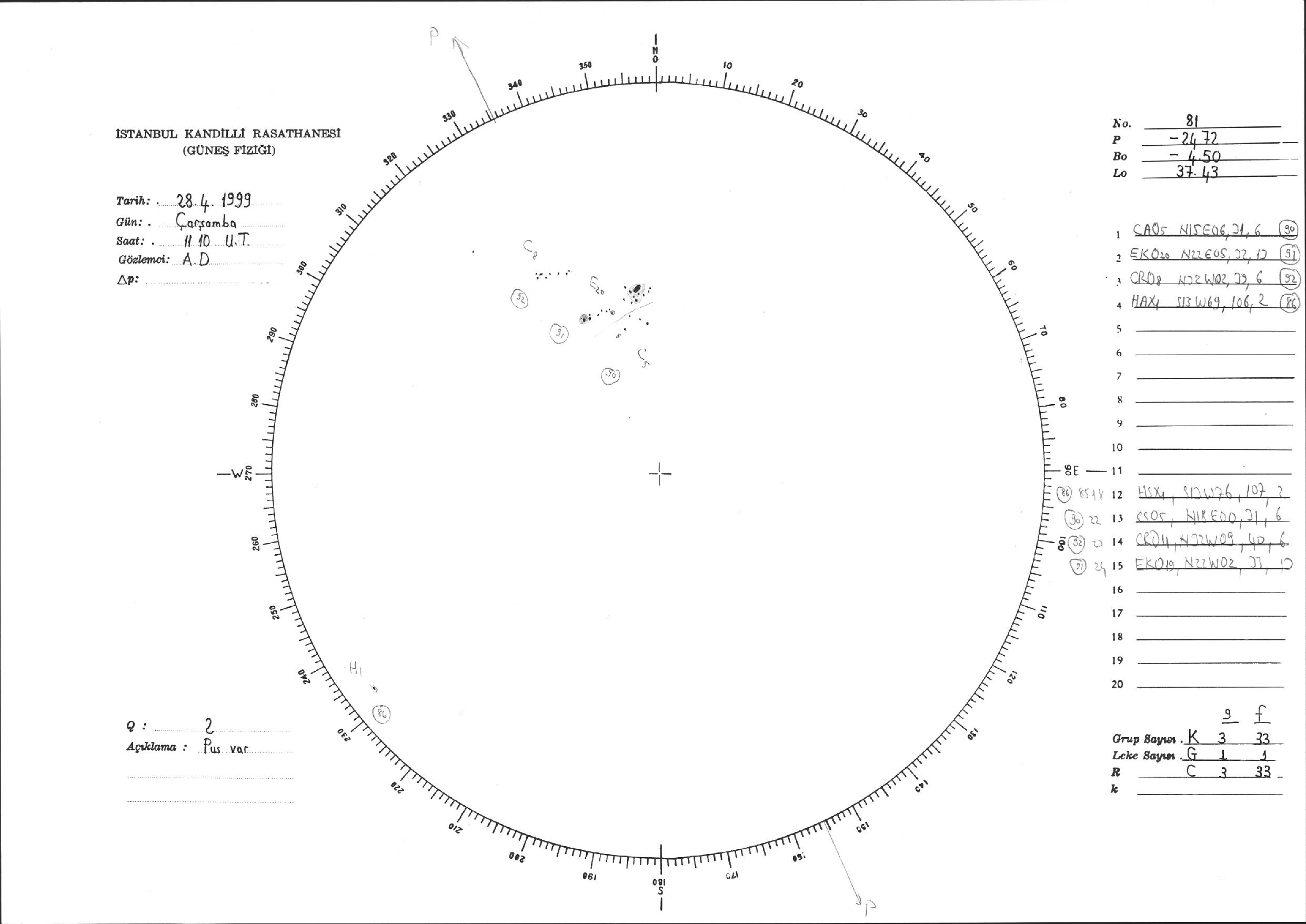 Güneş Lekesi Çizimi - 28.04.1999