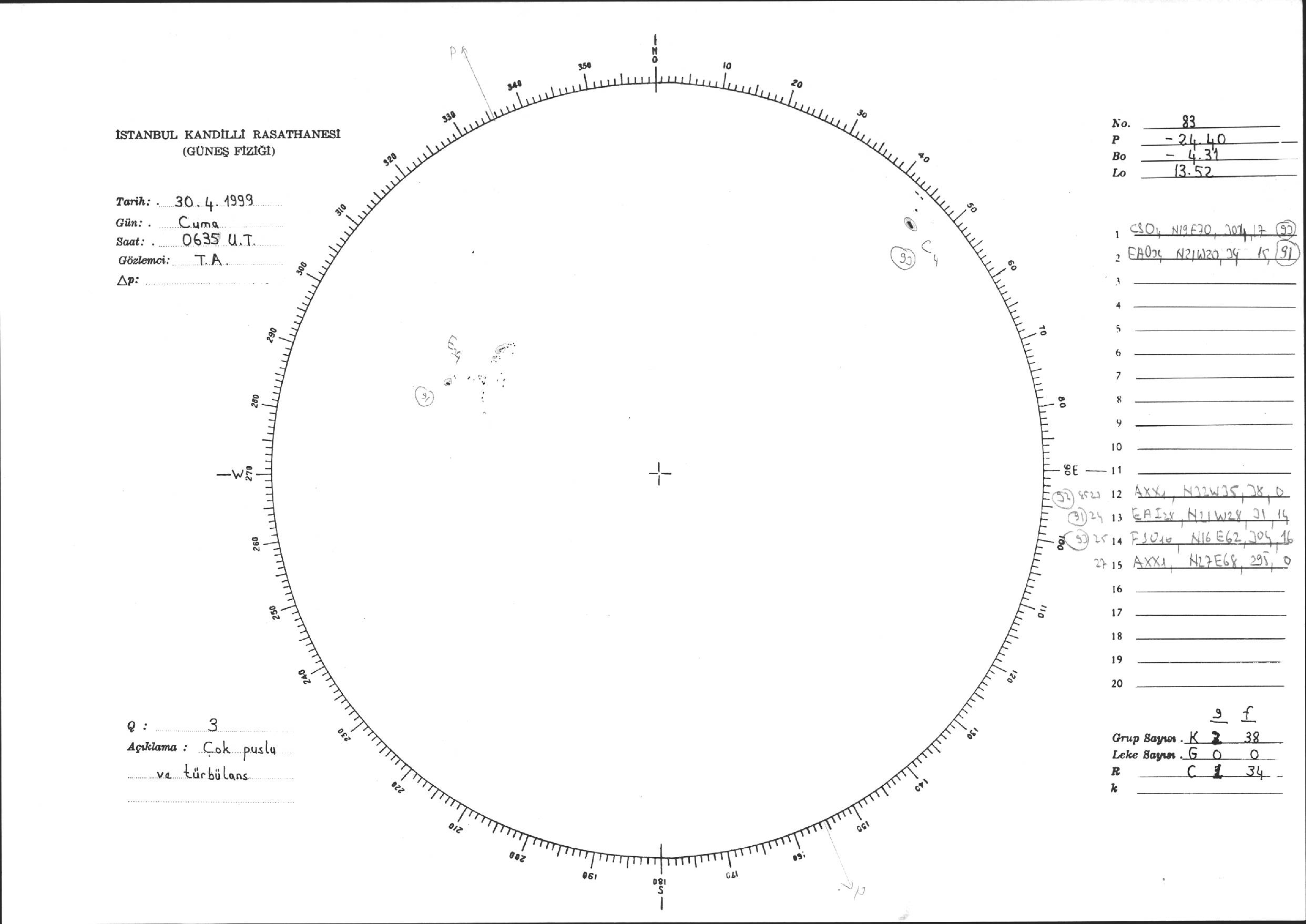 Güneş Lekesi Çizimi - 30.04.1999