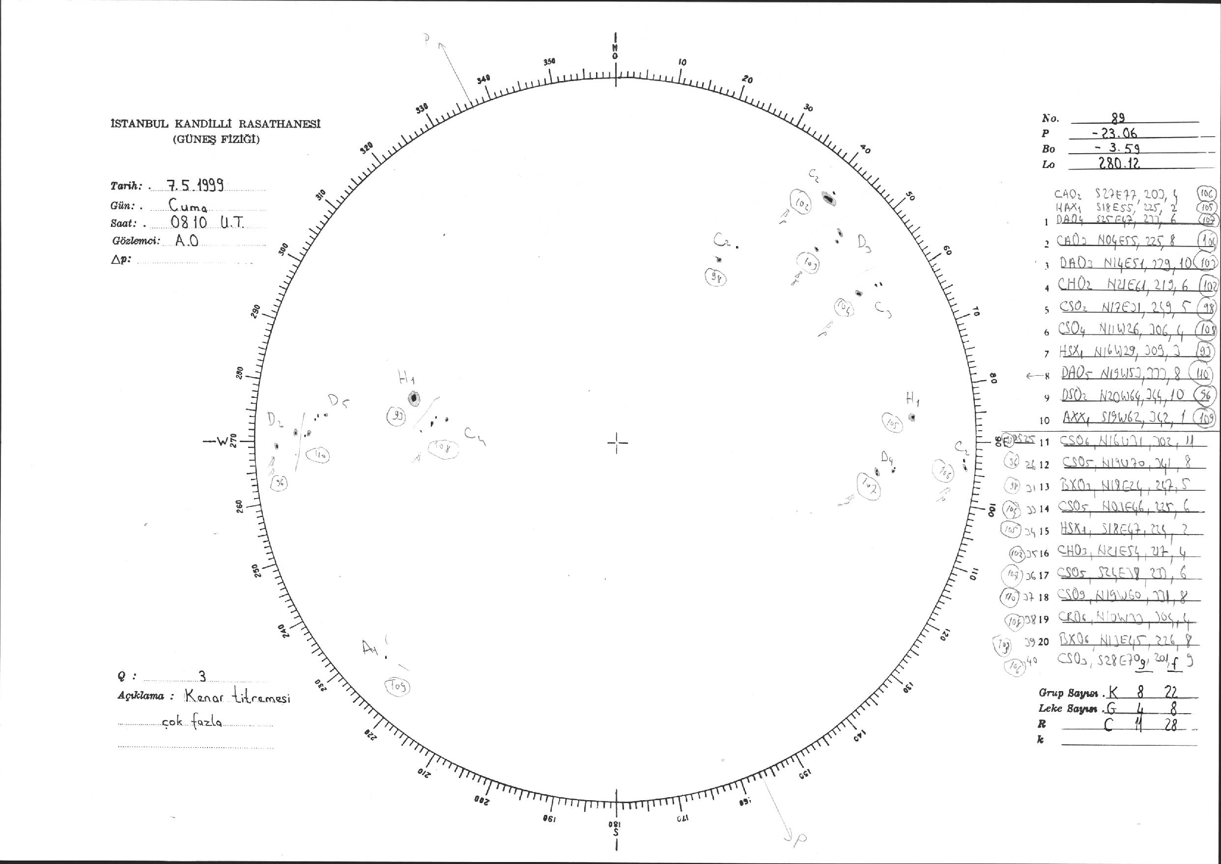 Güneş Lekesi Çizimi - 07.05.1999