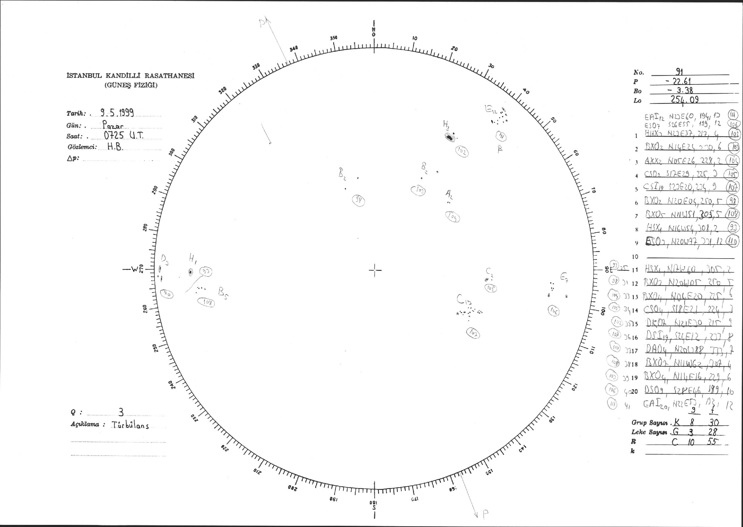 Güneş Lekesi Çizimi - 09.05.1999