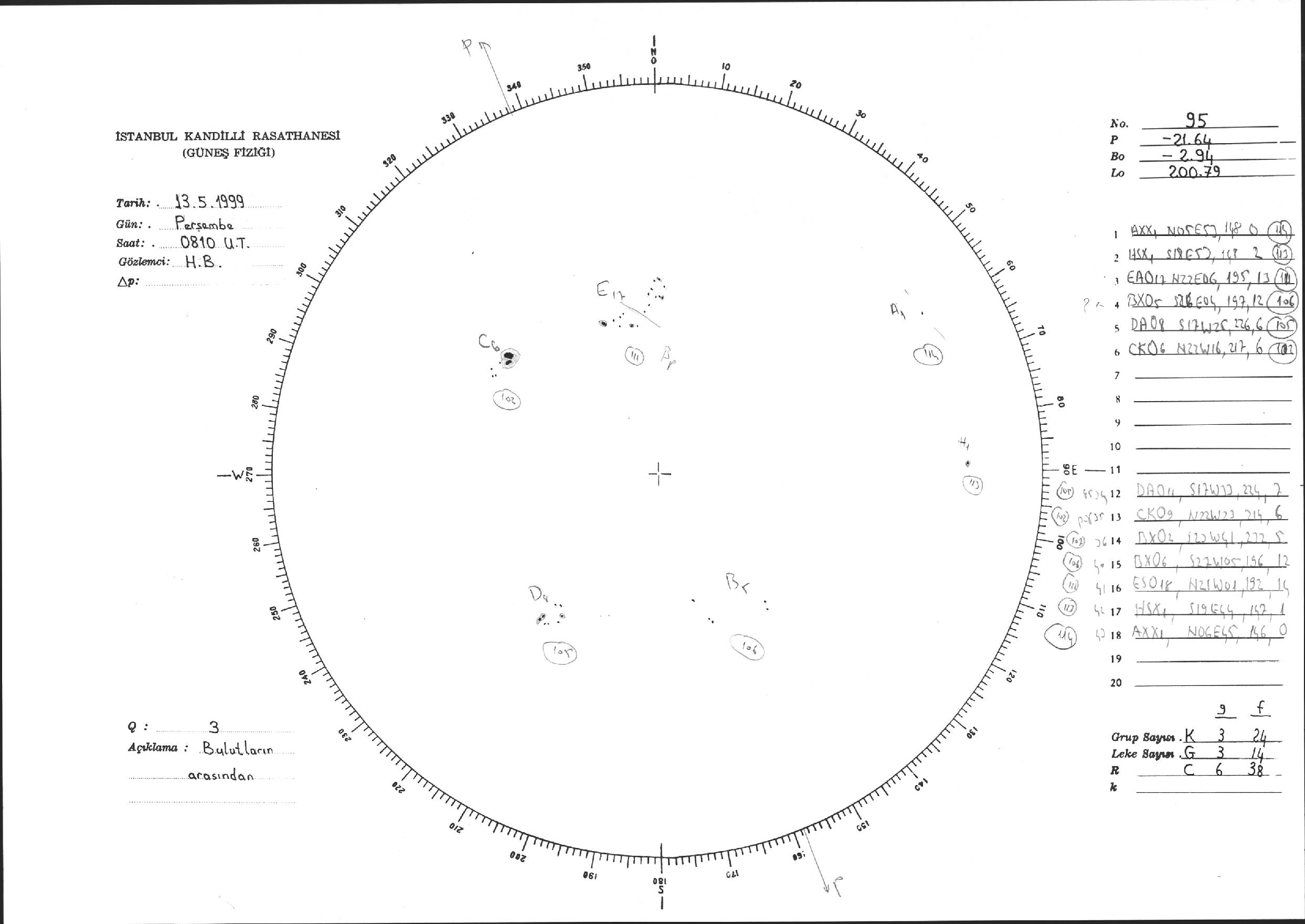 Güneş Lekesi Çizimi - 13.05.1999