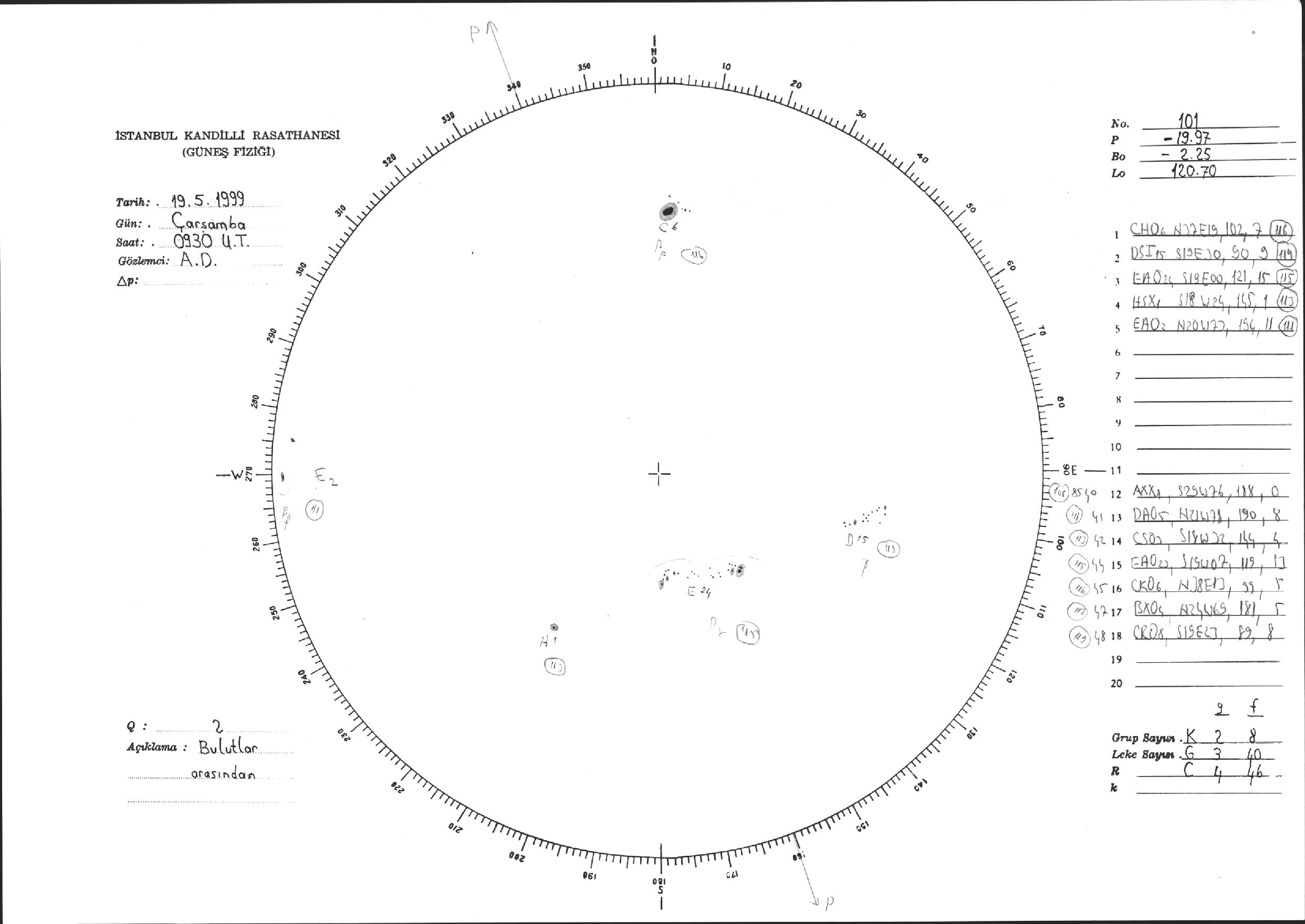Güneş Lekesi Çizimi - 19.05.1999
