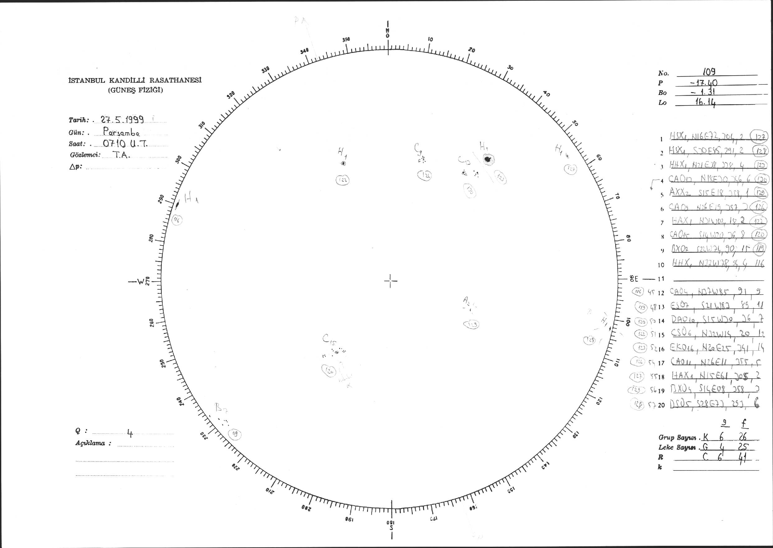 Güneş Lekesi Çizimi - 27.05.1999