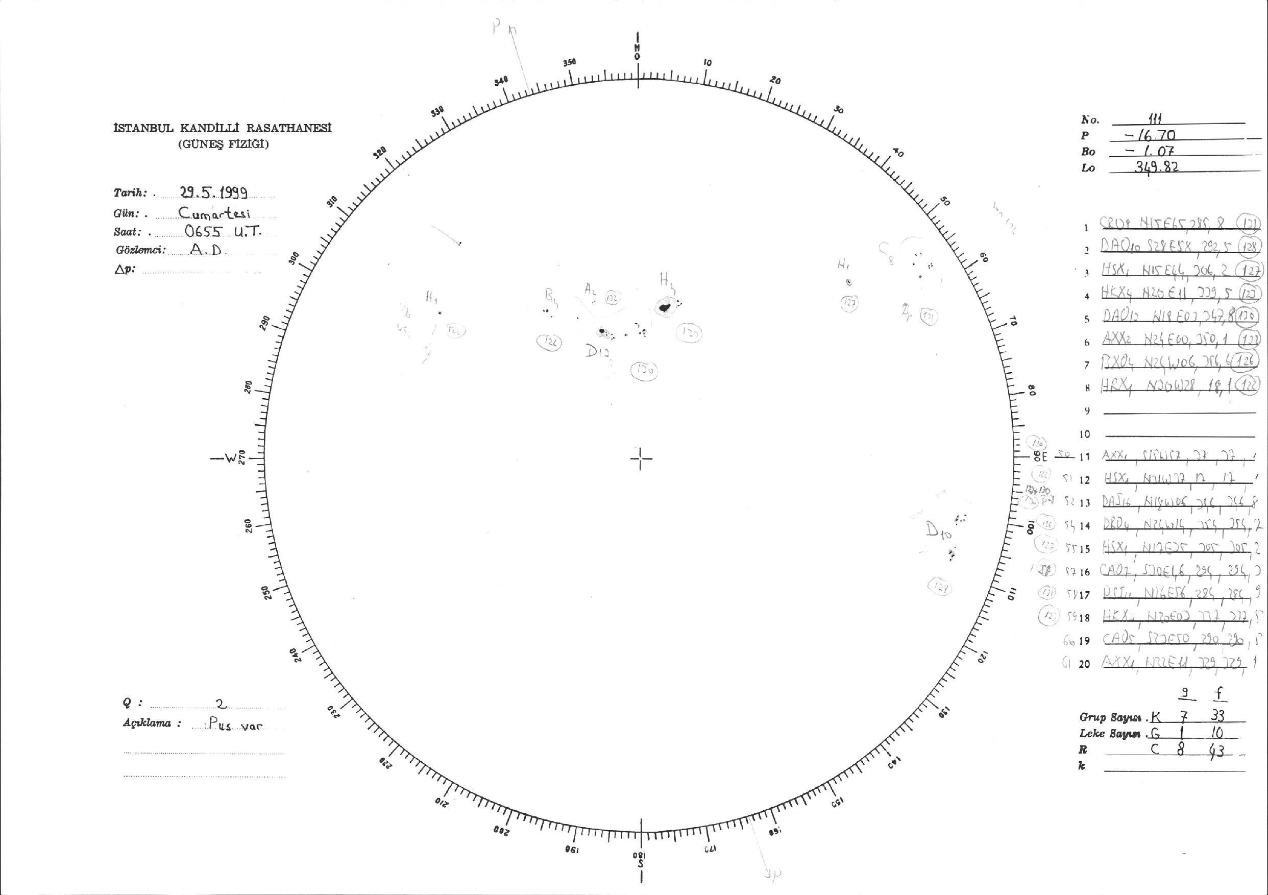 Güneş Lekesi Çizimi - 29.05.1999