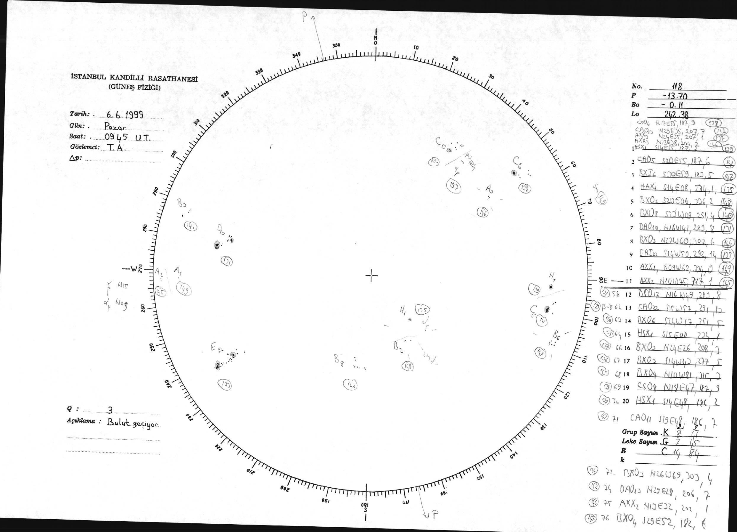 Güneş Lekesi Çizimi - 06.06.1999