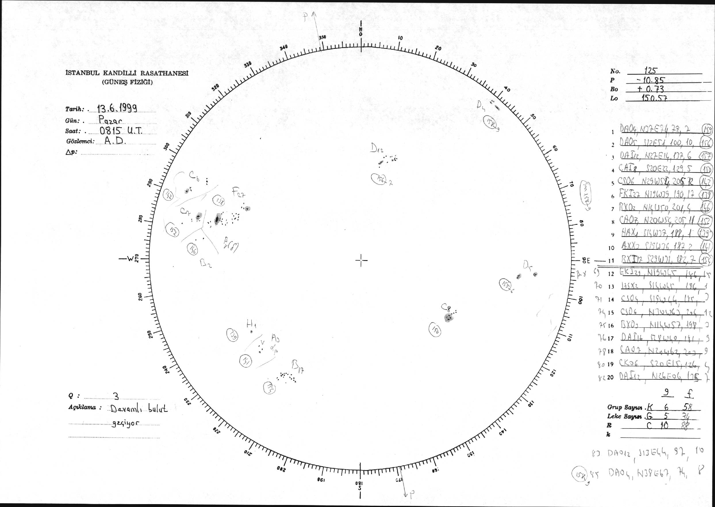 Güneş Lekesi Çizimi - 13.06.1999