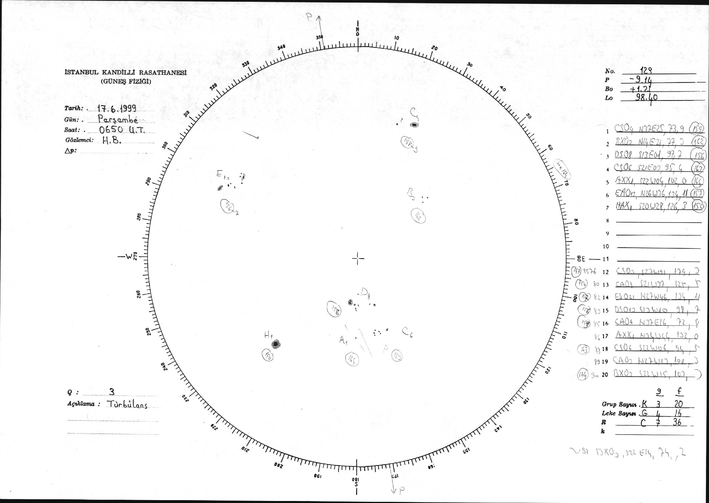 Güneş Lekesi Çizimi - 17.06.1999