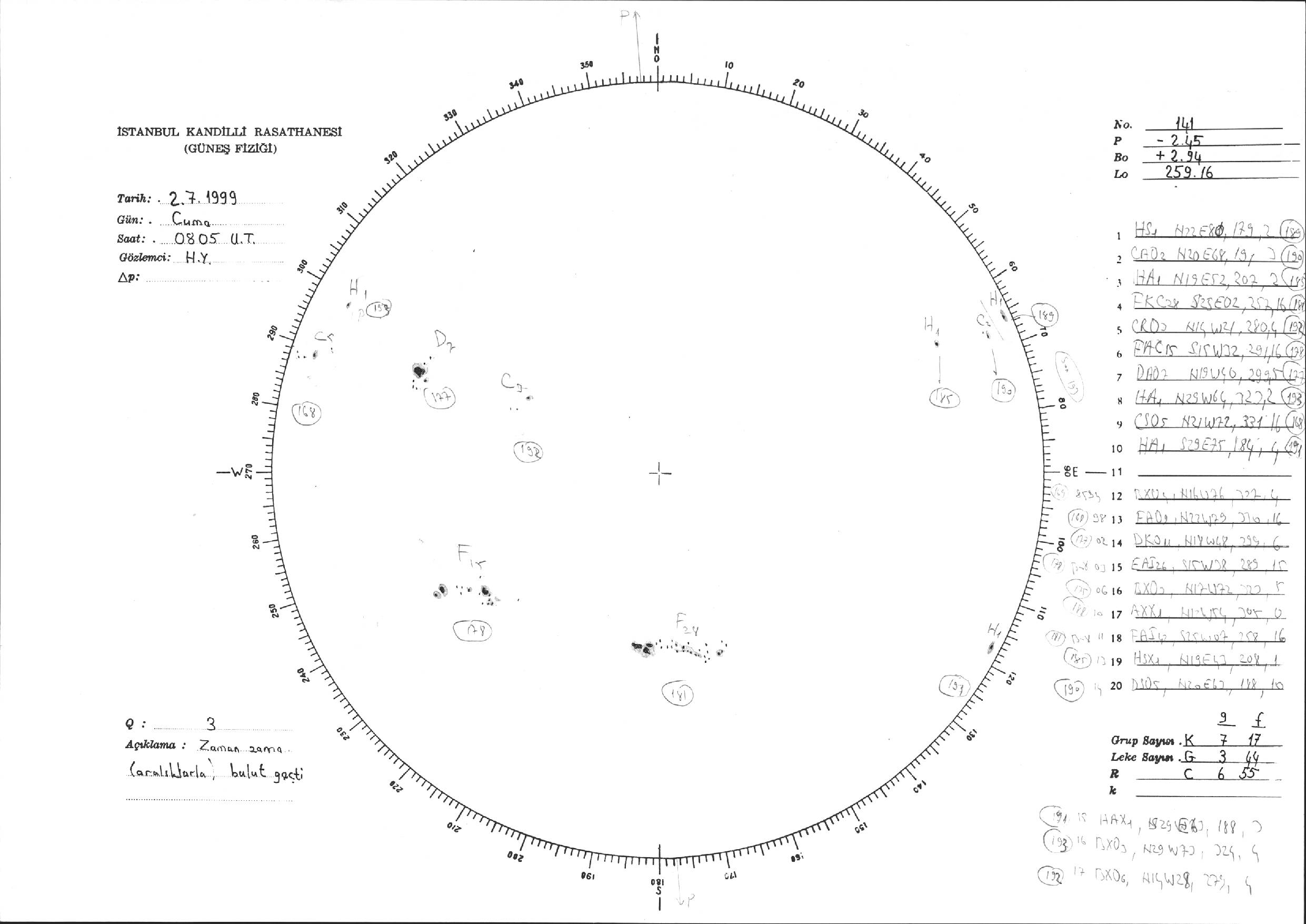 Güneş Lekesi Çizimi - 02.07.1999
