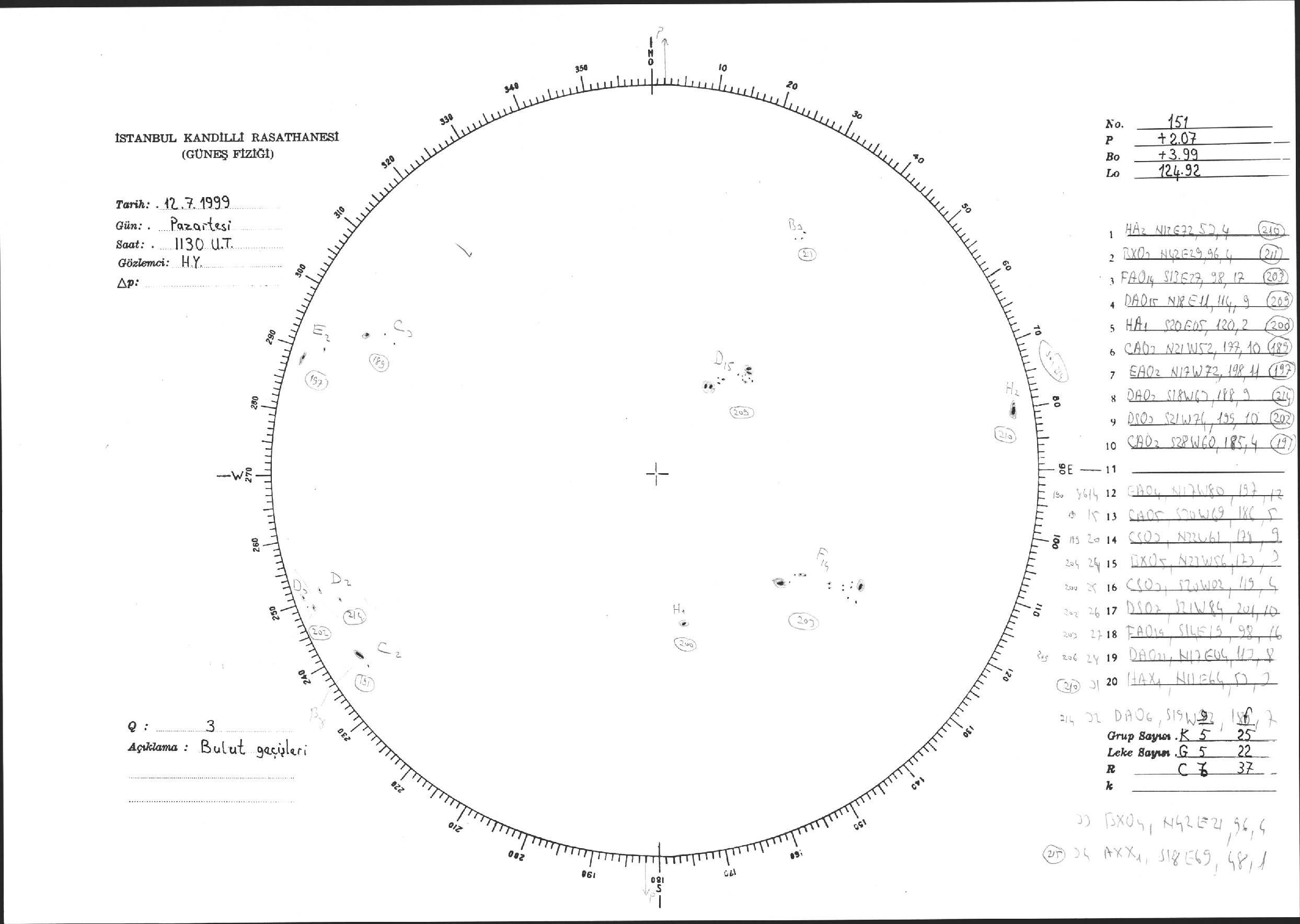 Güneş Lekesi Çizimi - 12.07.1999