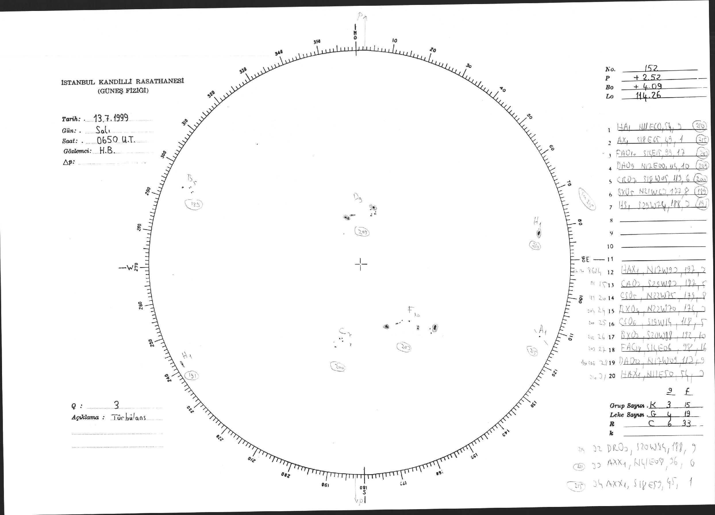 Güneş Lekesi Çizimi - 13.07.1999
