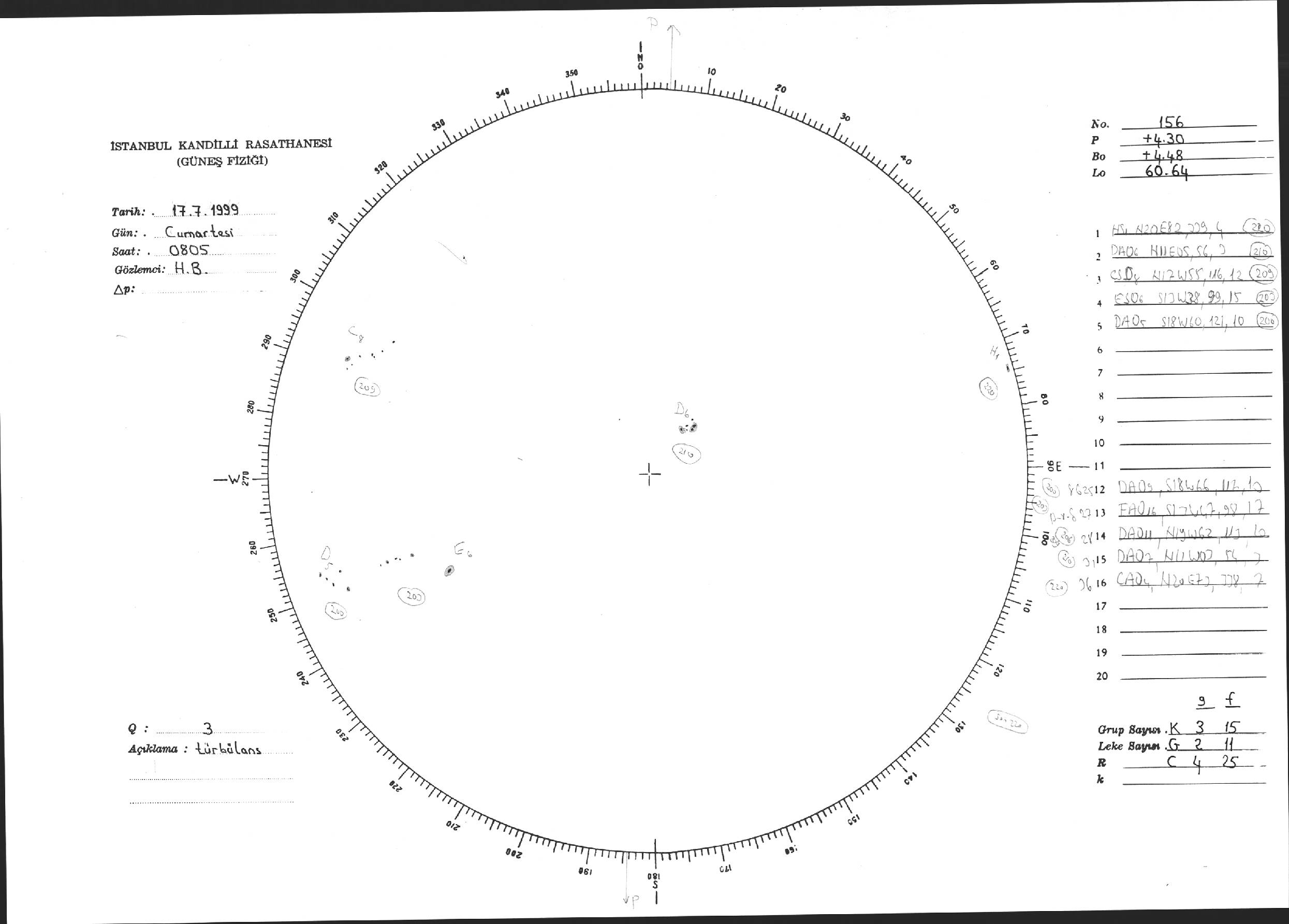 Güneş Lekesi Çizimi - 17.07.1999