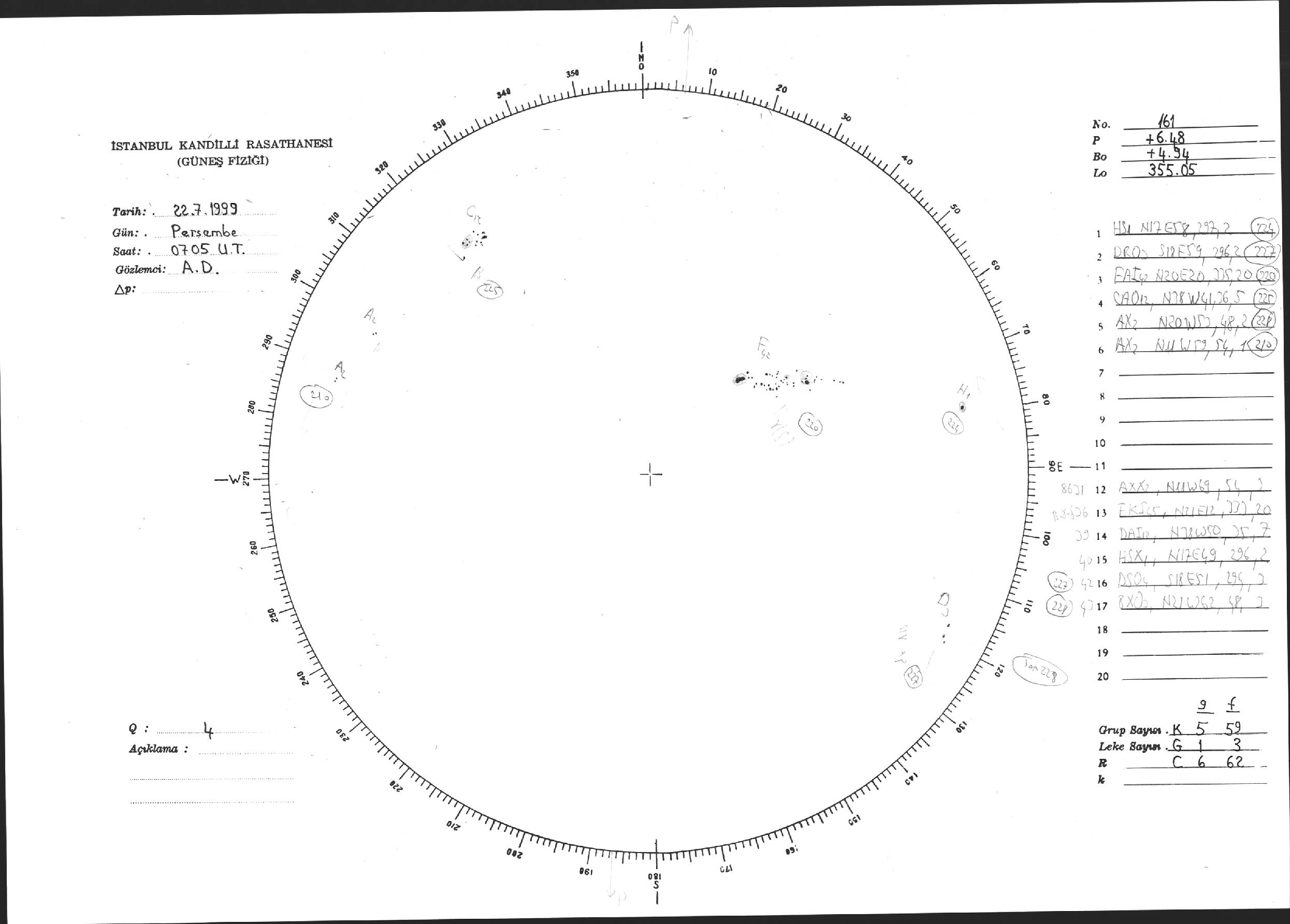 Güneş Lekesi Çizimi - 22.07.1999