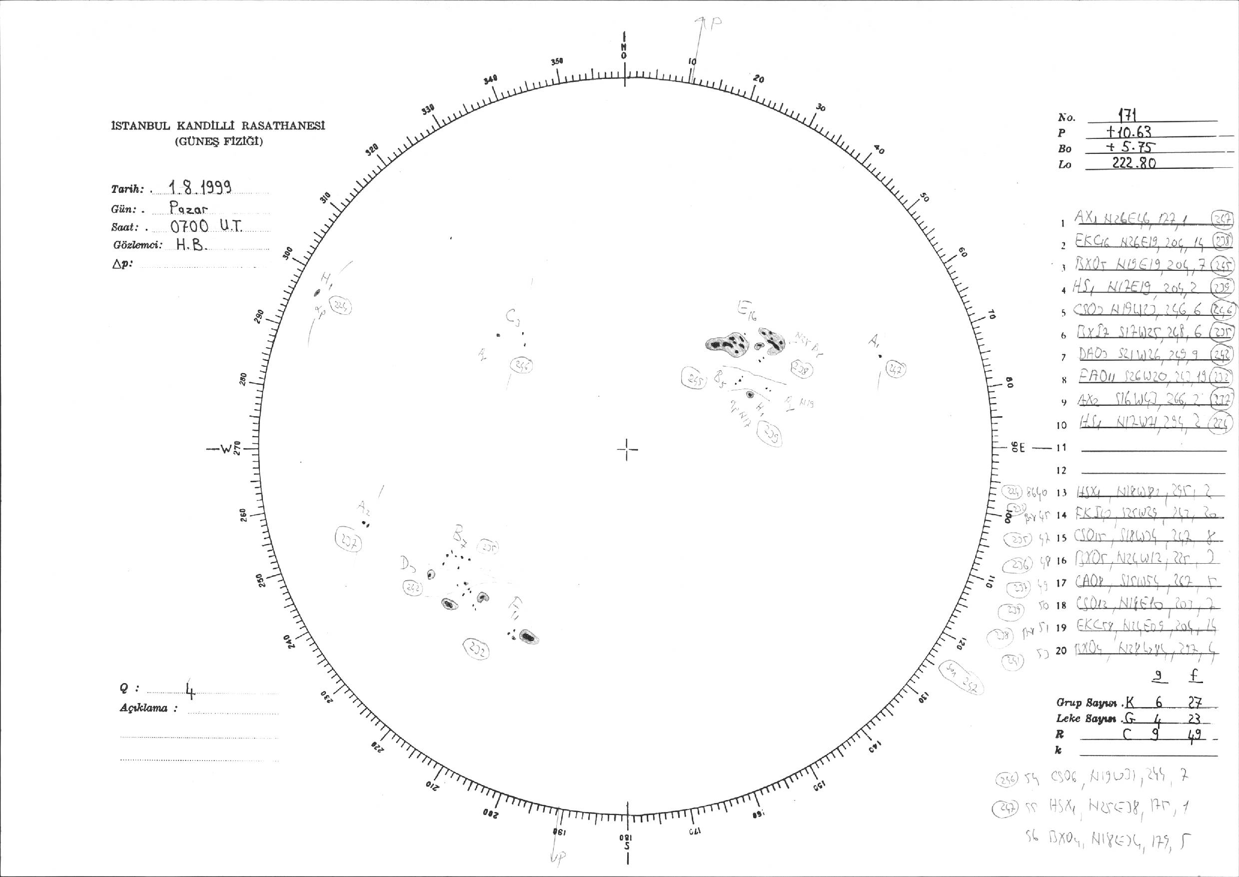 Güneş Lekesi Çizimi - 01.08.1999