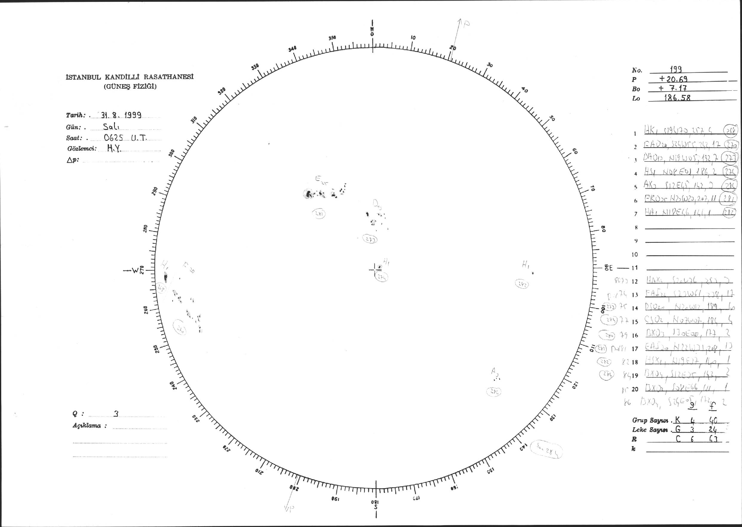 Güneş Lekesi Çizimi - 31.08.1999
