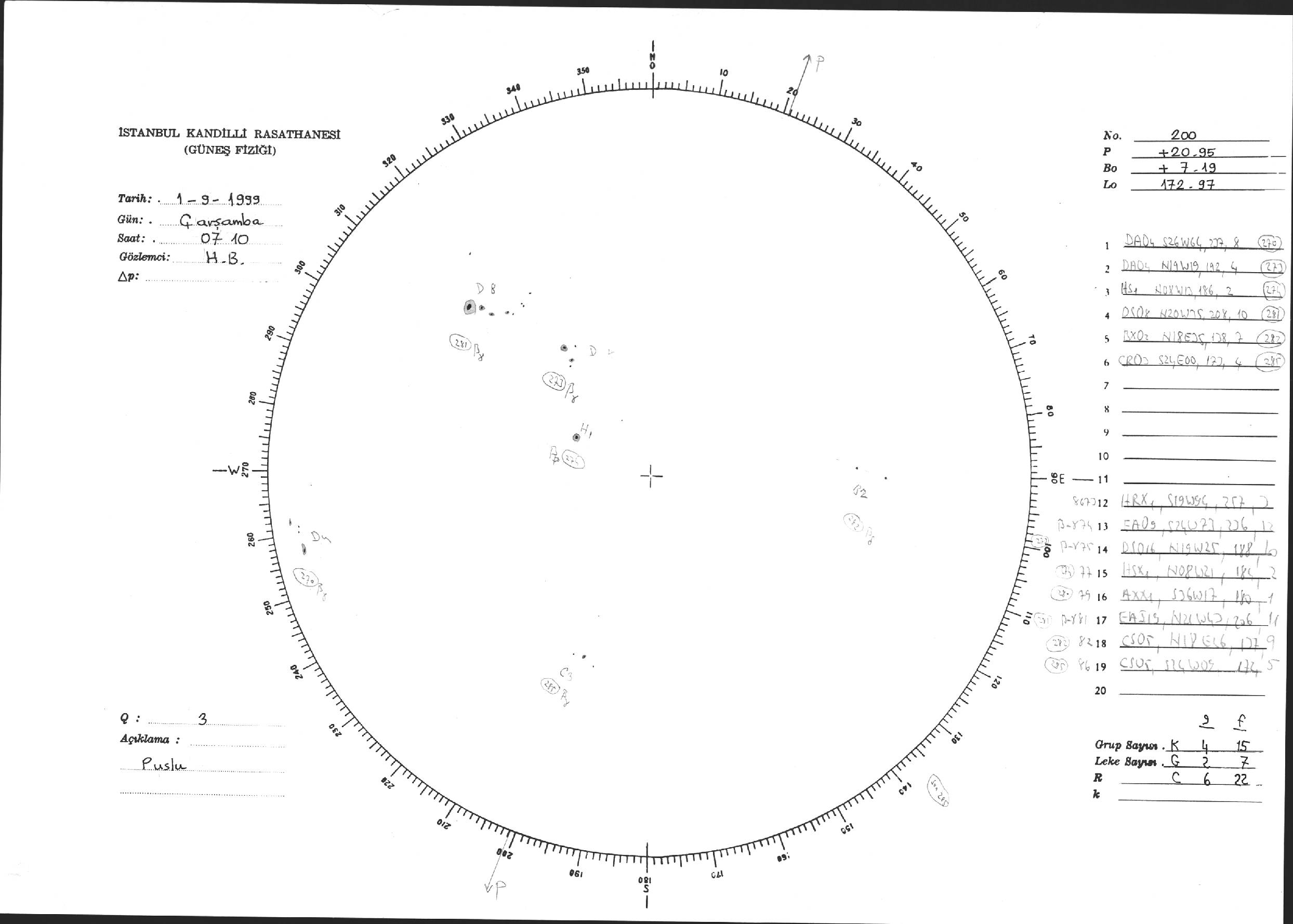 Güneş Lekesi Çizimi - 01.09.1999