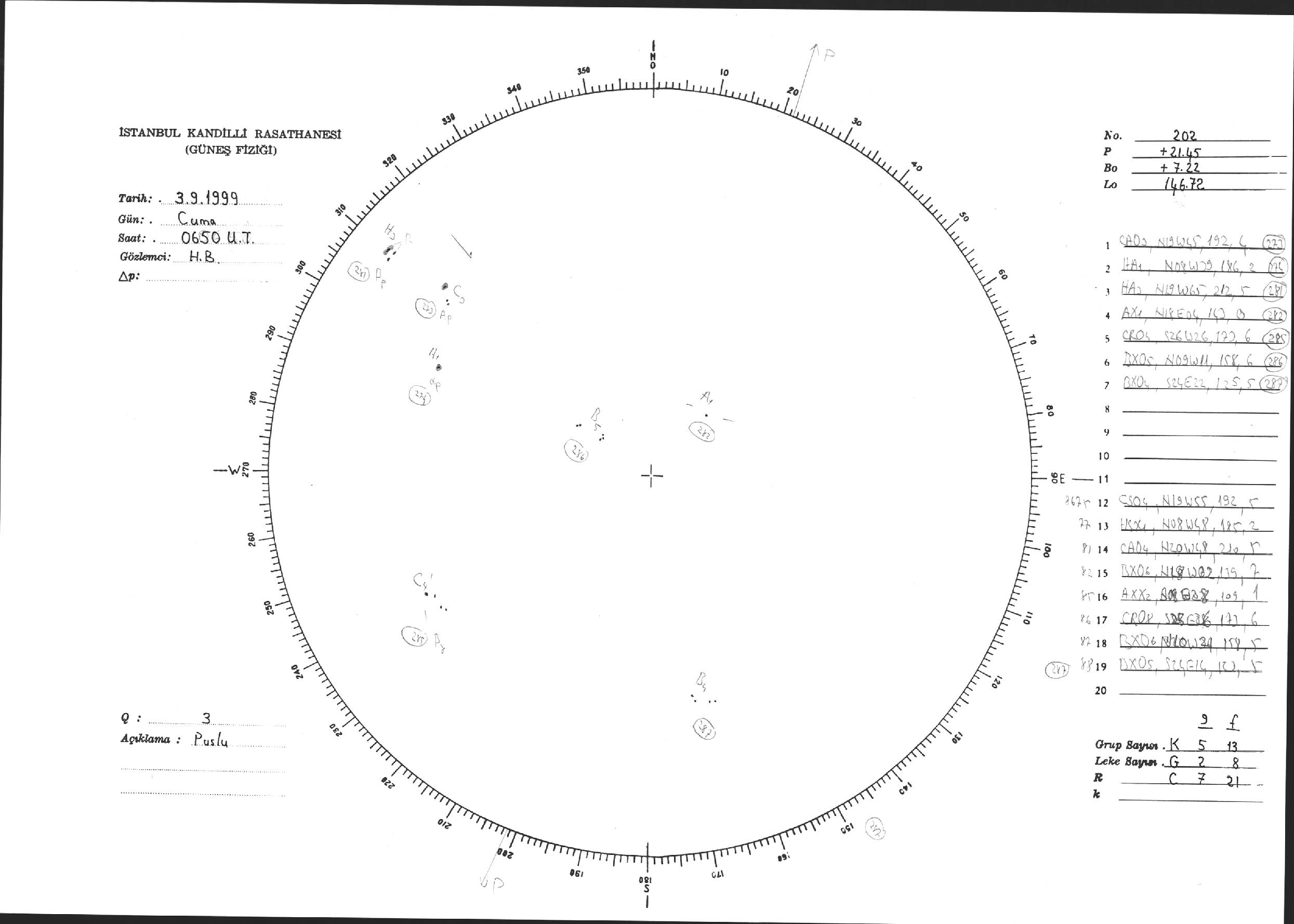 Güneş Lekesi Çizimi - 03.09.1999