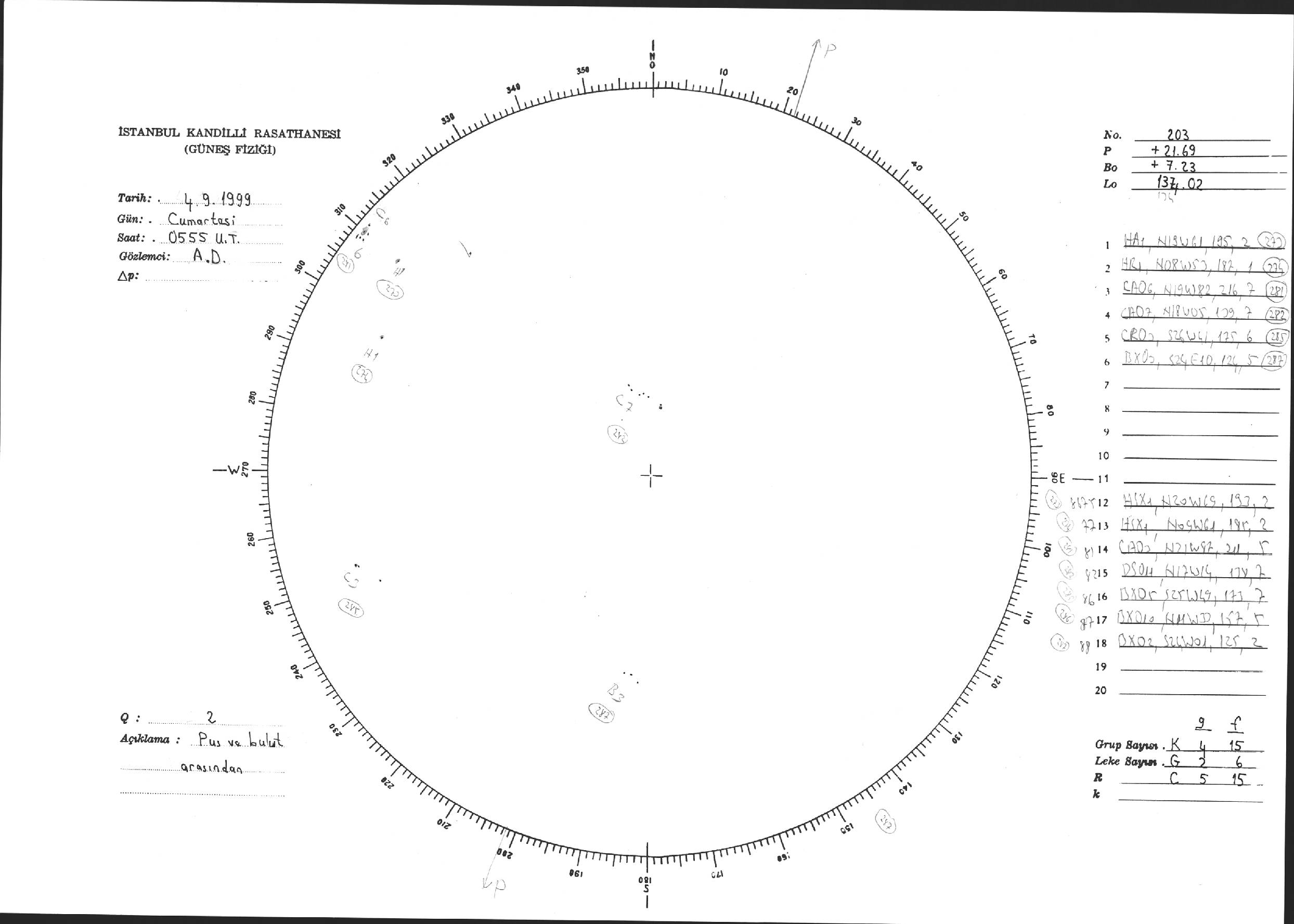 Güneş Lekesi Çizimi - 04.09.1999