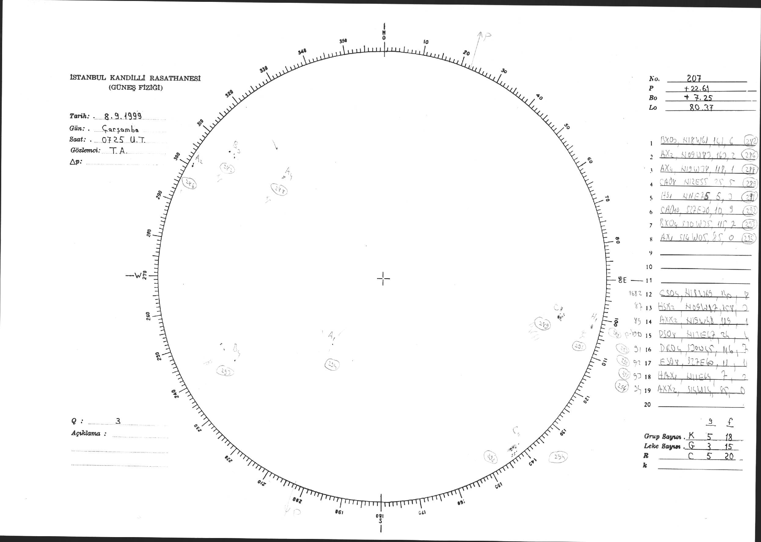 Güneş Lekesi Çizimi - 08.09.1999
