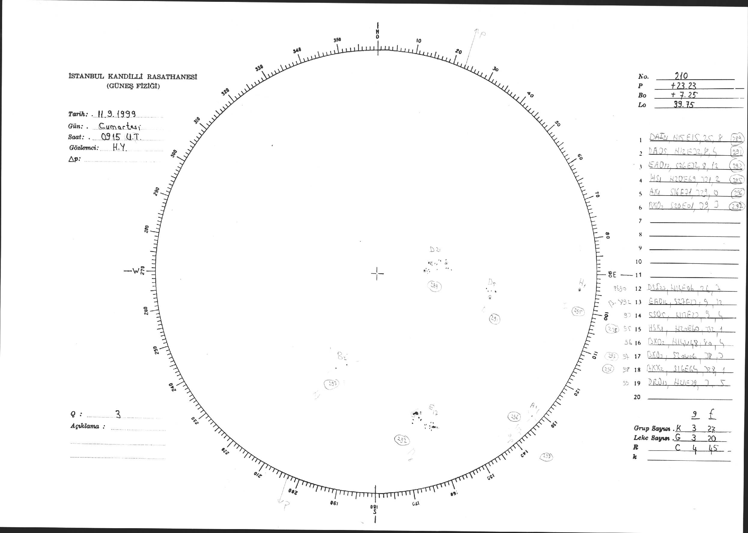Güneş Lekesi Çizimi - 11.09.1999