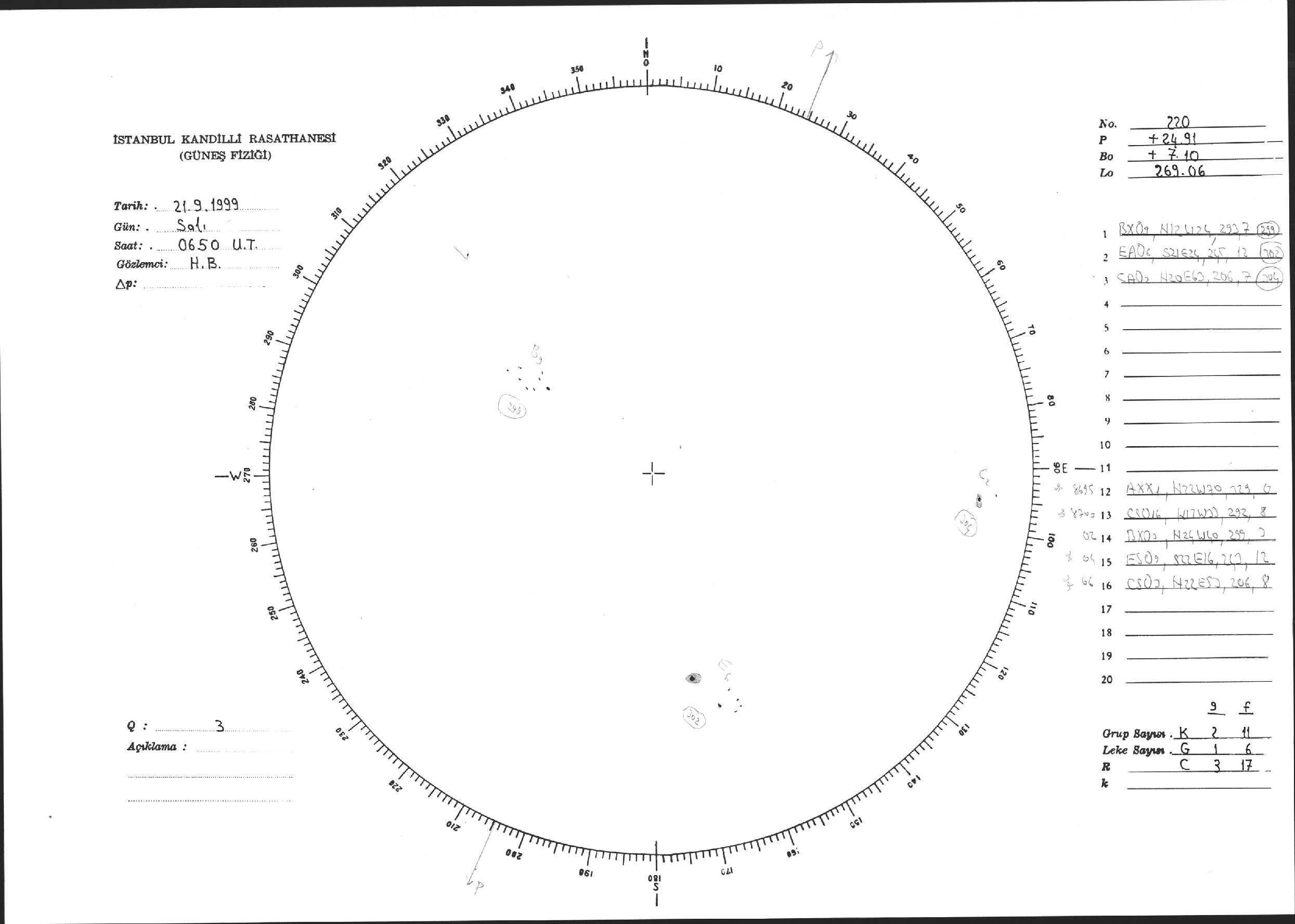 Güneş Lekesi Çizimi - 21.09.1999