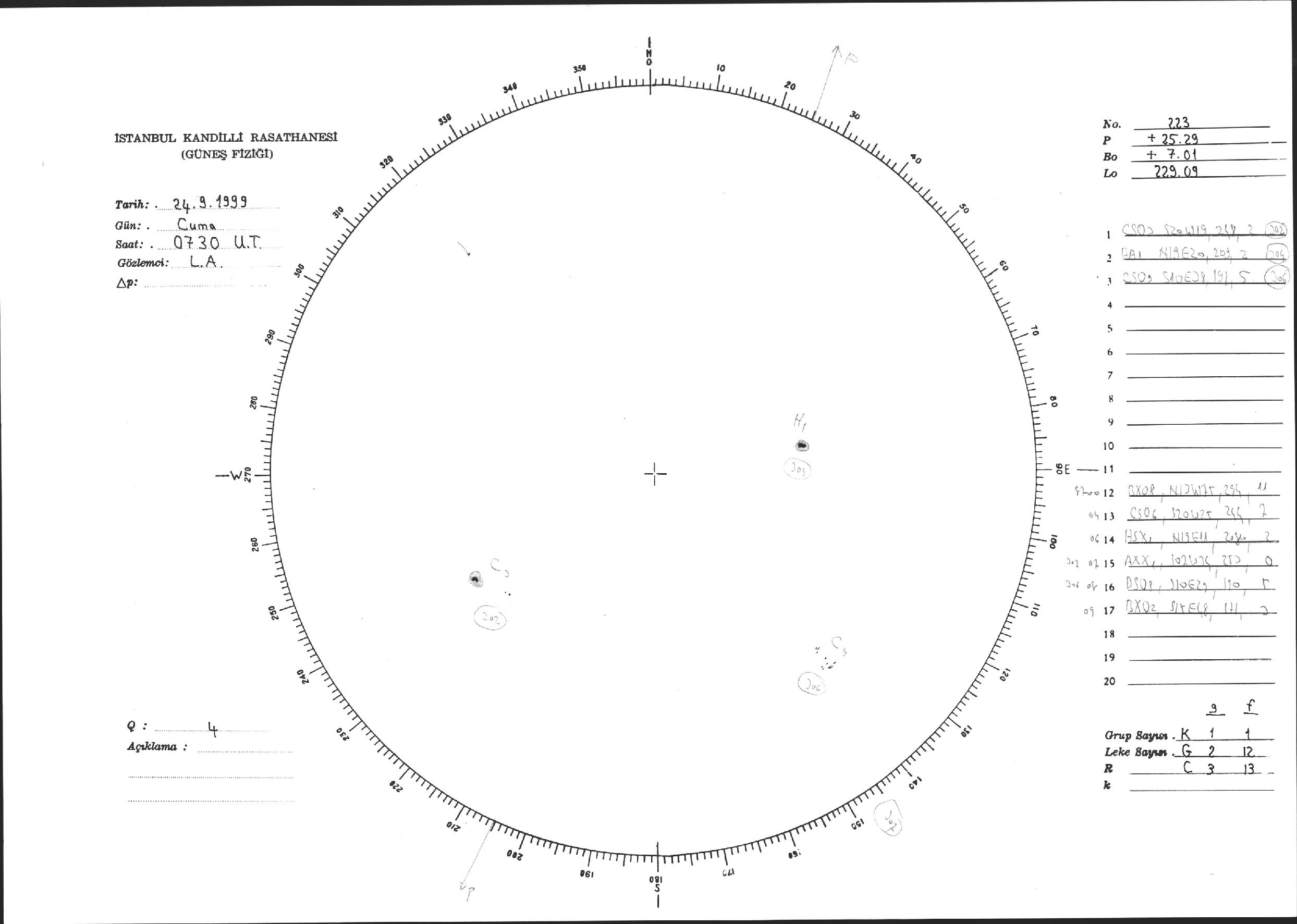 Güneş Lekesi Çizimi - 24.09.1999