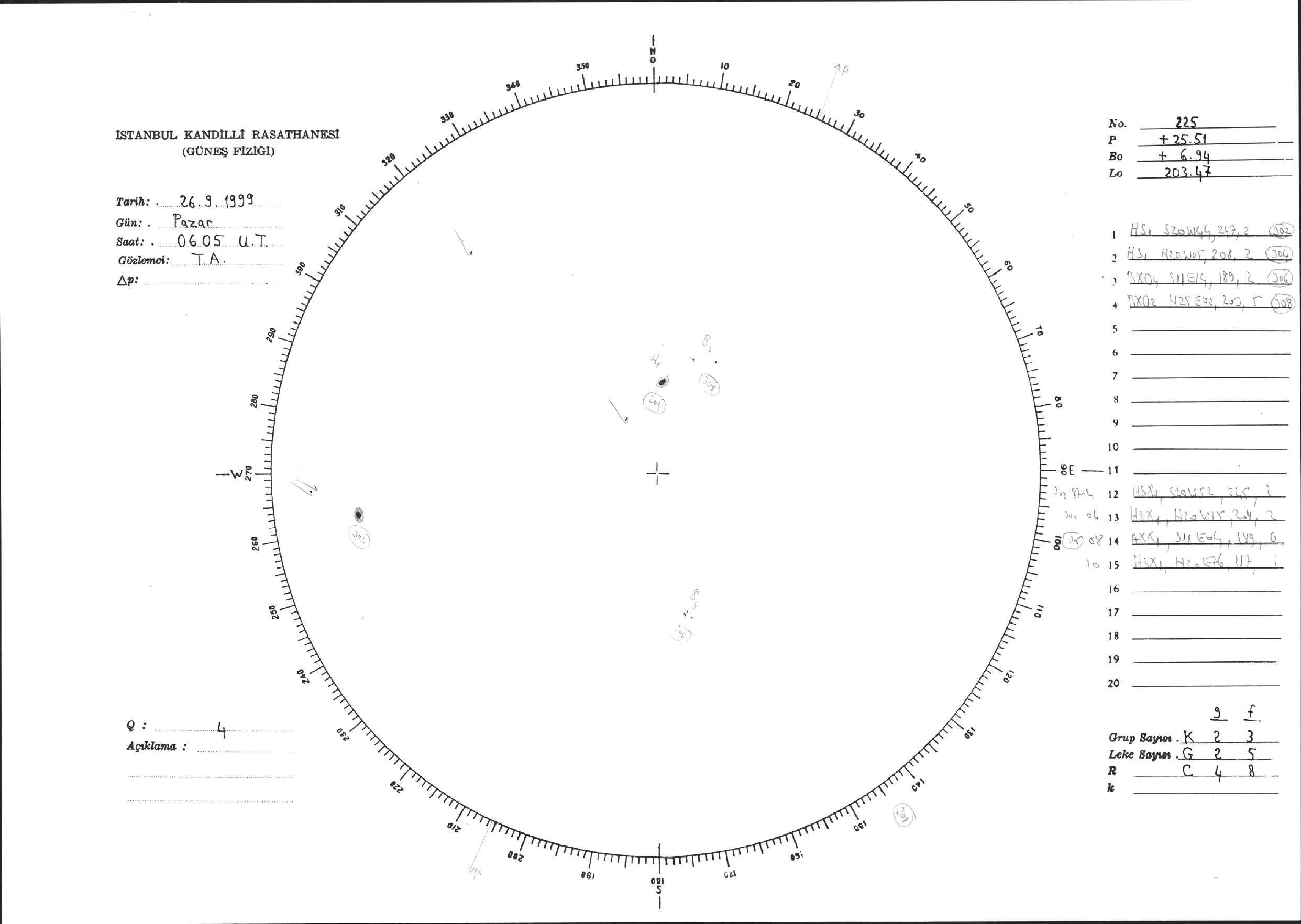 Güneş Lekesi Çizimi - 26.09.1999