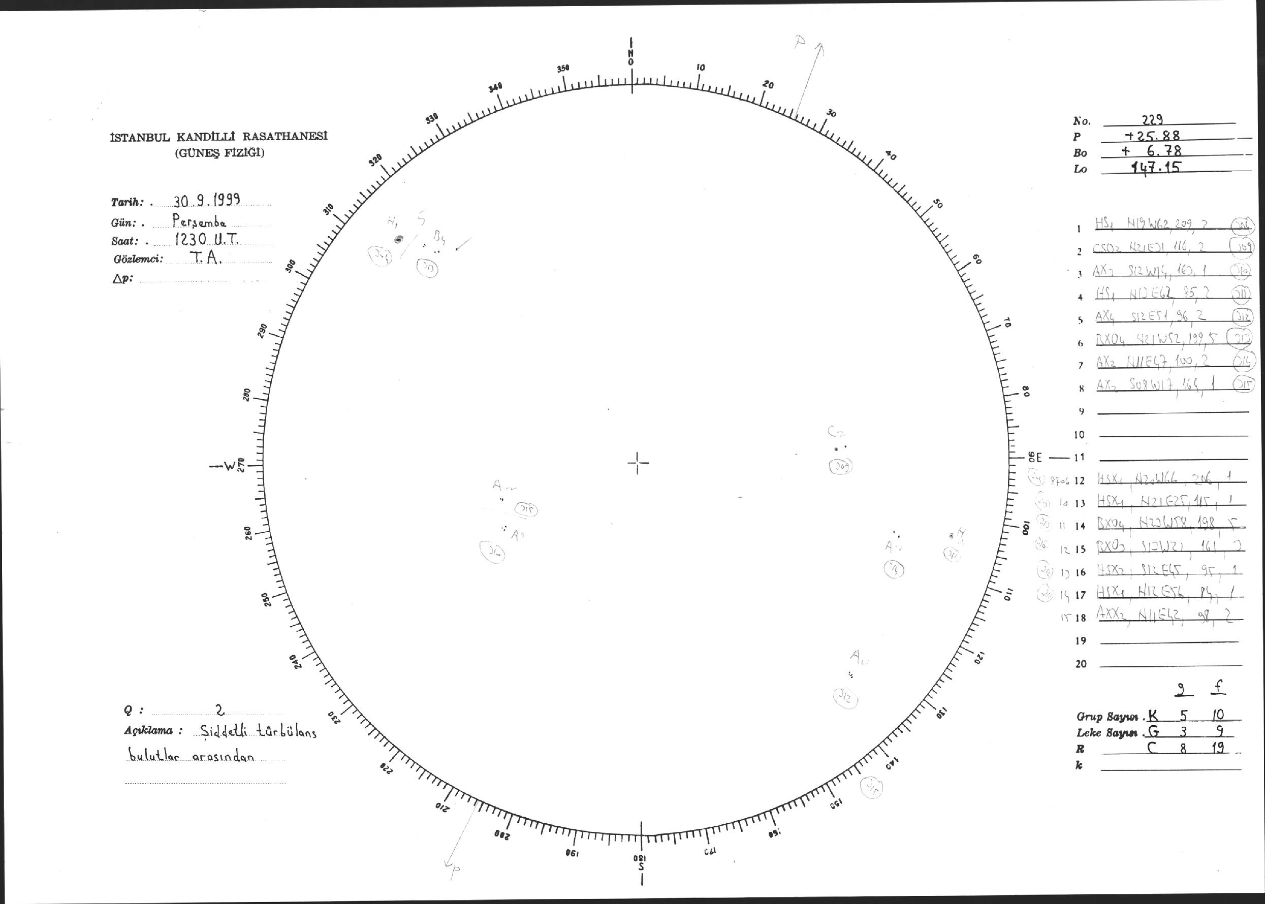 Güneş Lekesi Çizimi - 30.09.1999