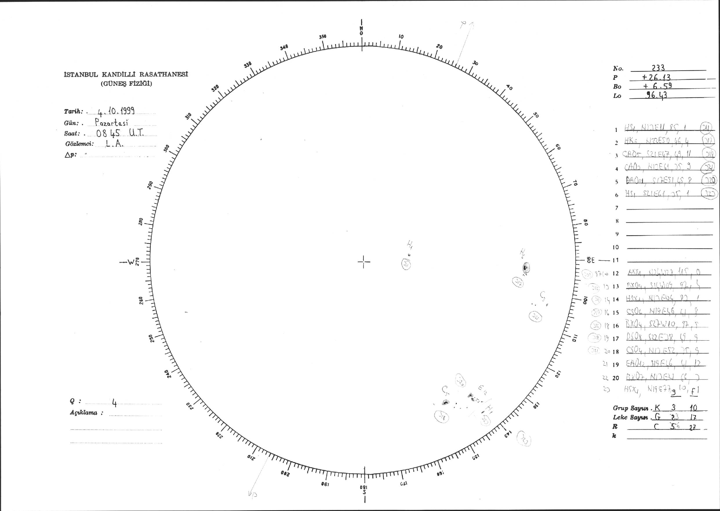 Güneş Lekesi Çizimi - 04.10.1999