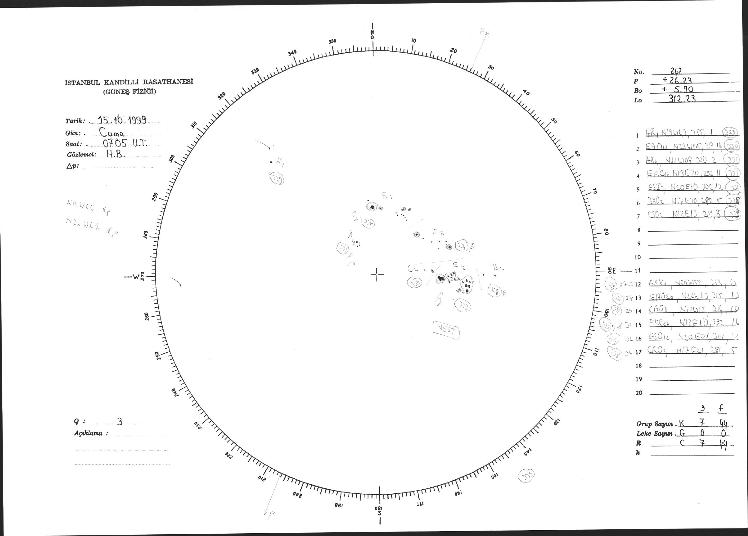 Güneş Lekesi Çizimi - 15.10.1999