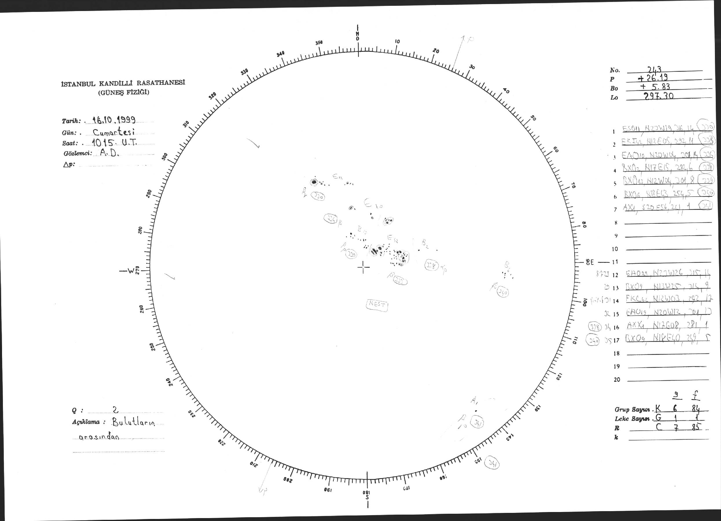 Güneş Lekesi Çizimi - 16.10.1999