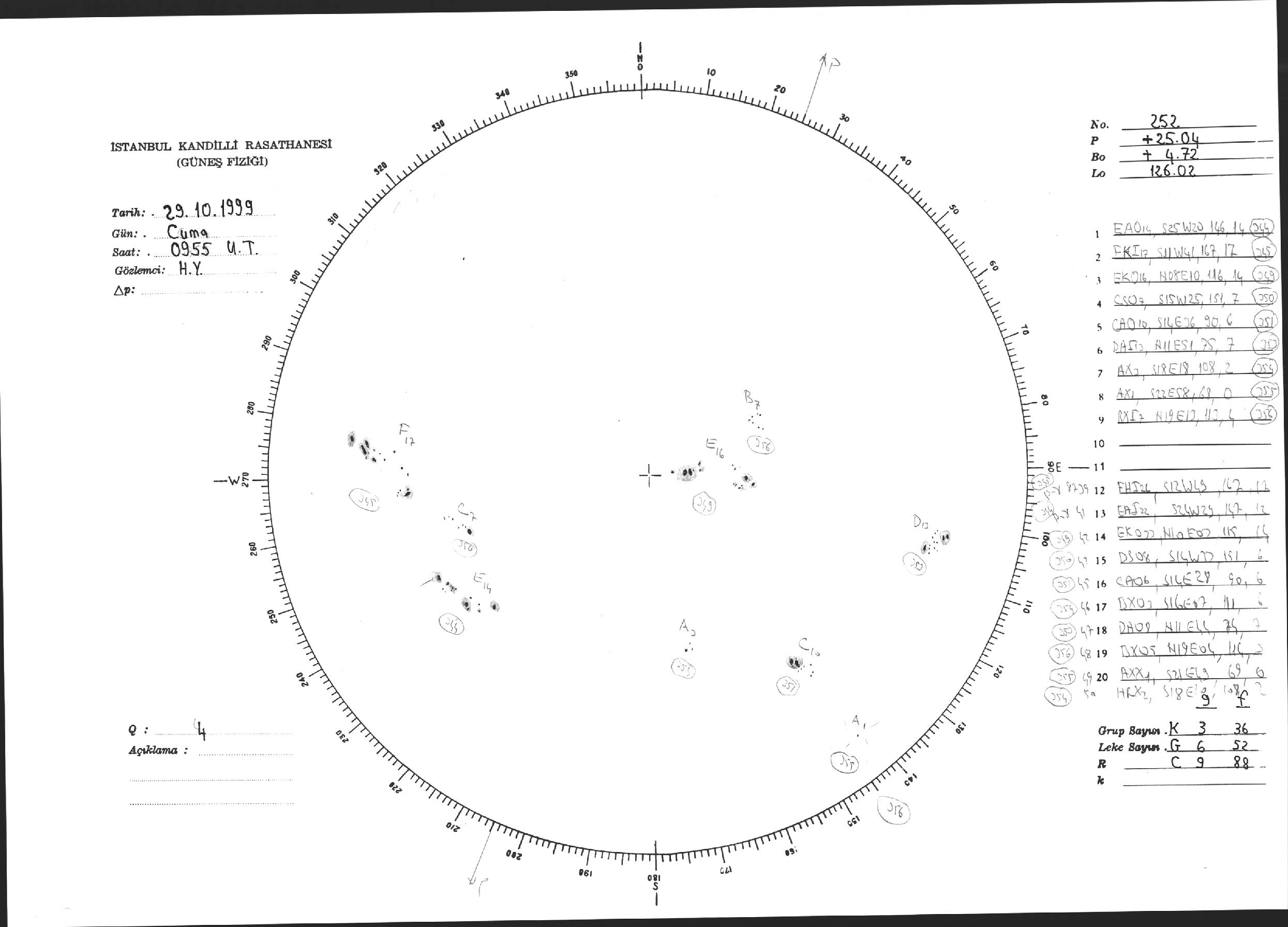 Güneş Lekesi Çizimi - 29.10.1999