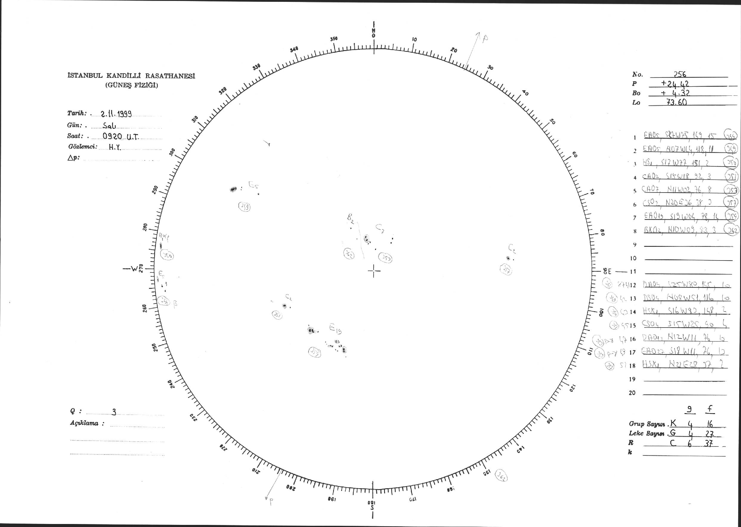 Güneş Lekesi Çizimi - 02.11.1999