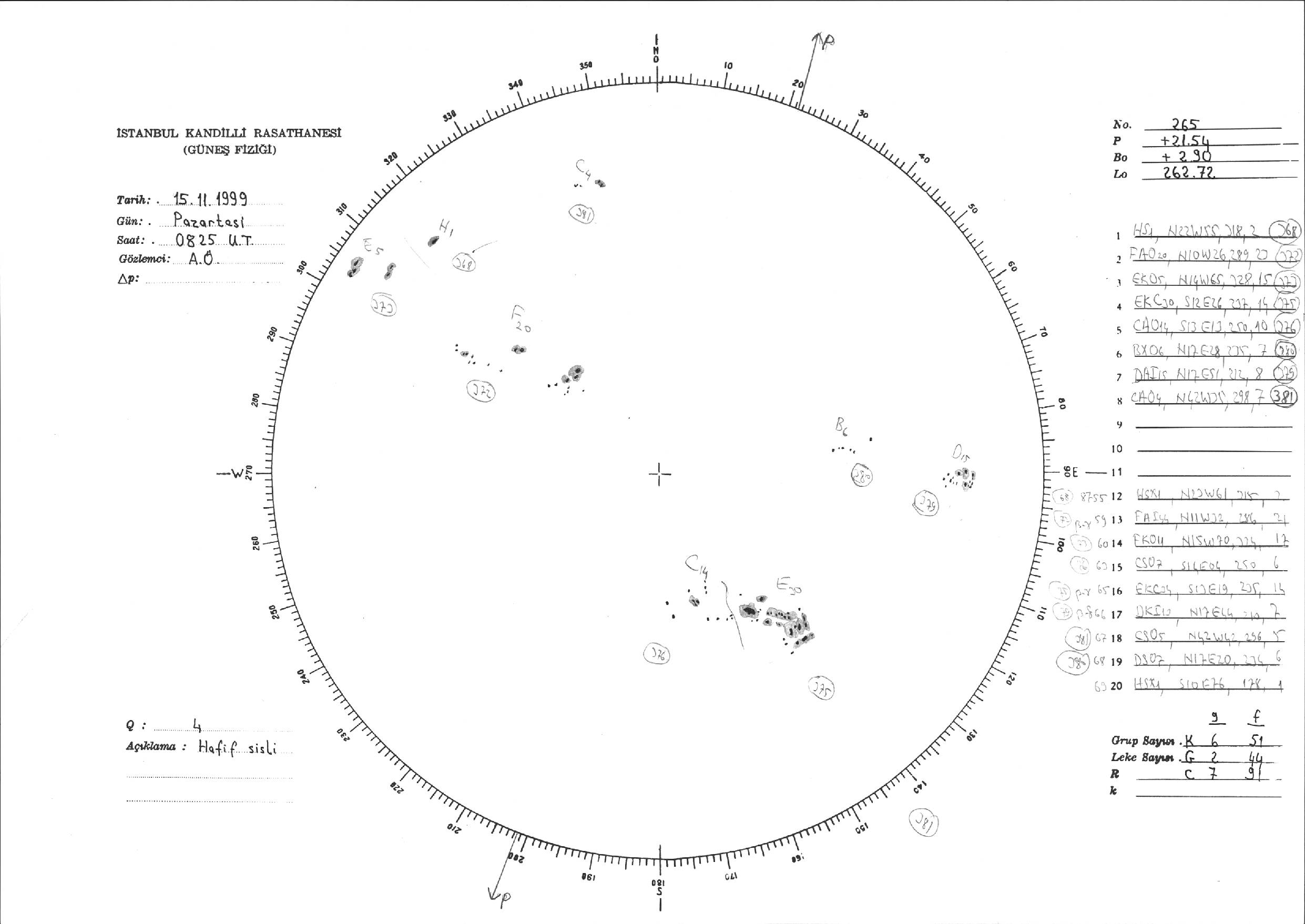 Güneş Lekesi Çizimi - 15.11.1999