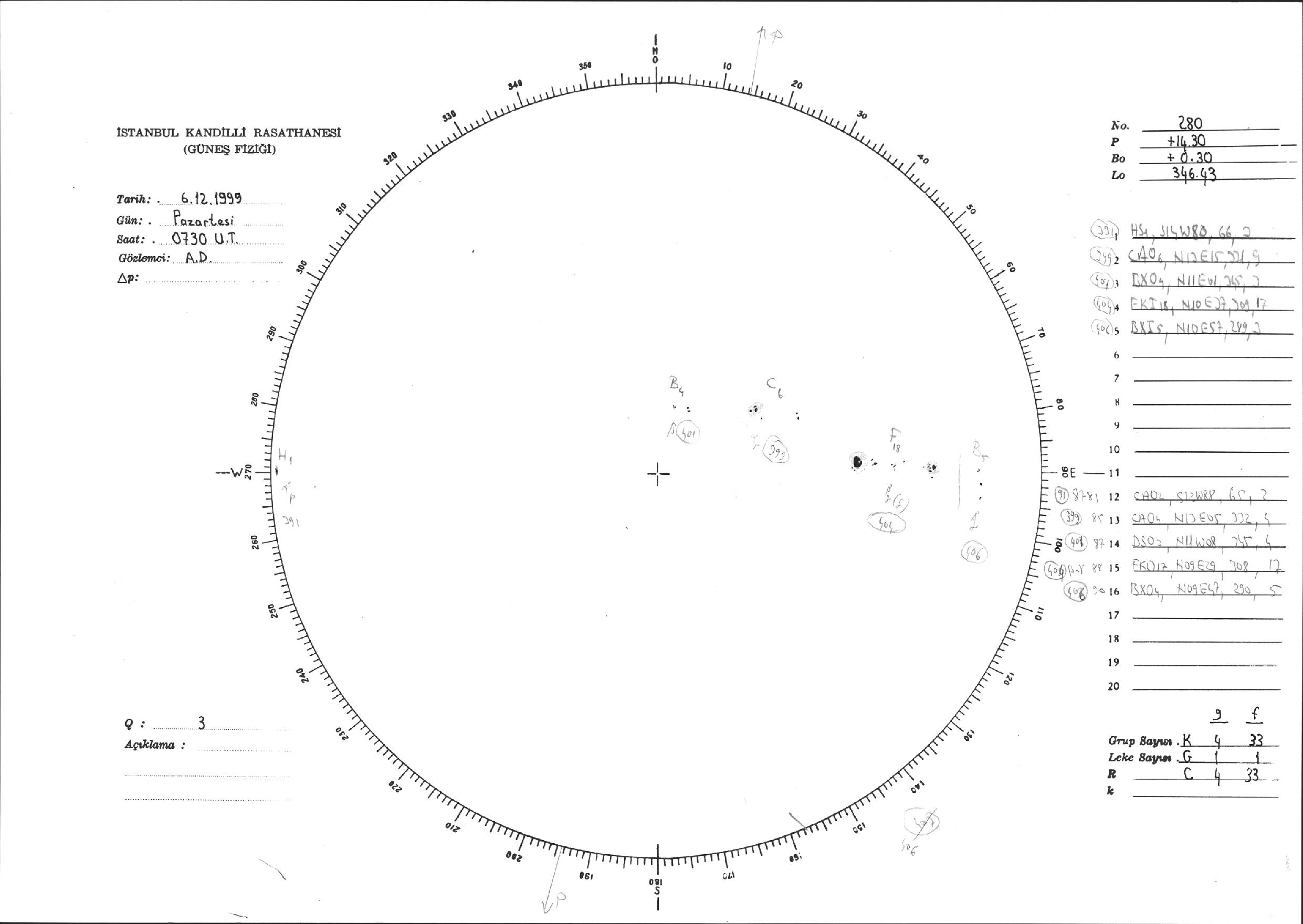 Güneş Lekesi Çizimi - 06.12.1999