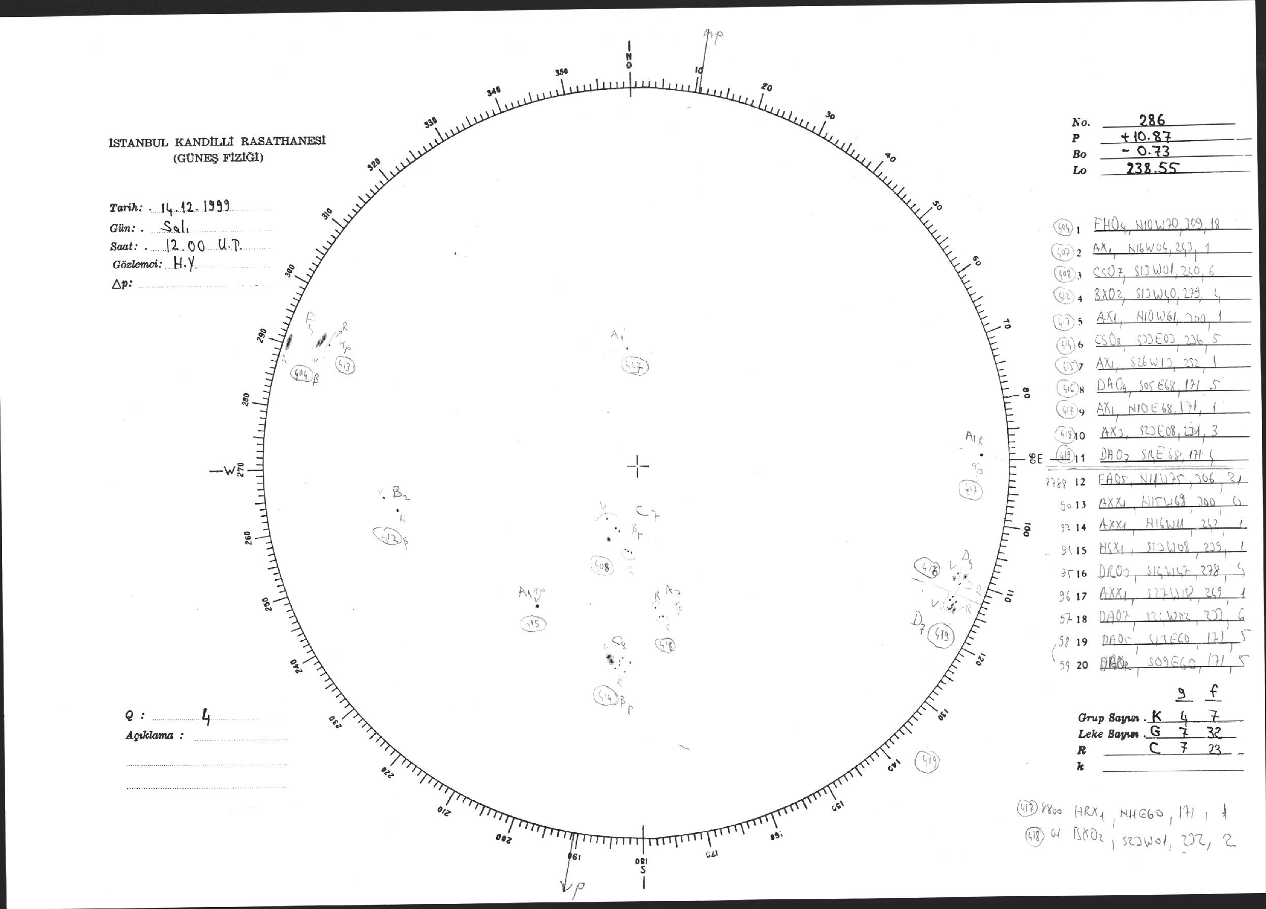 Güneş Lekesi Çizimi - 14.12.1999