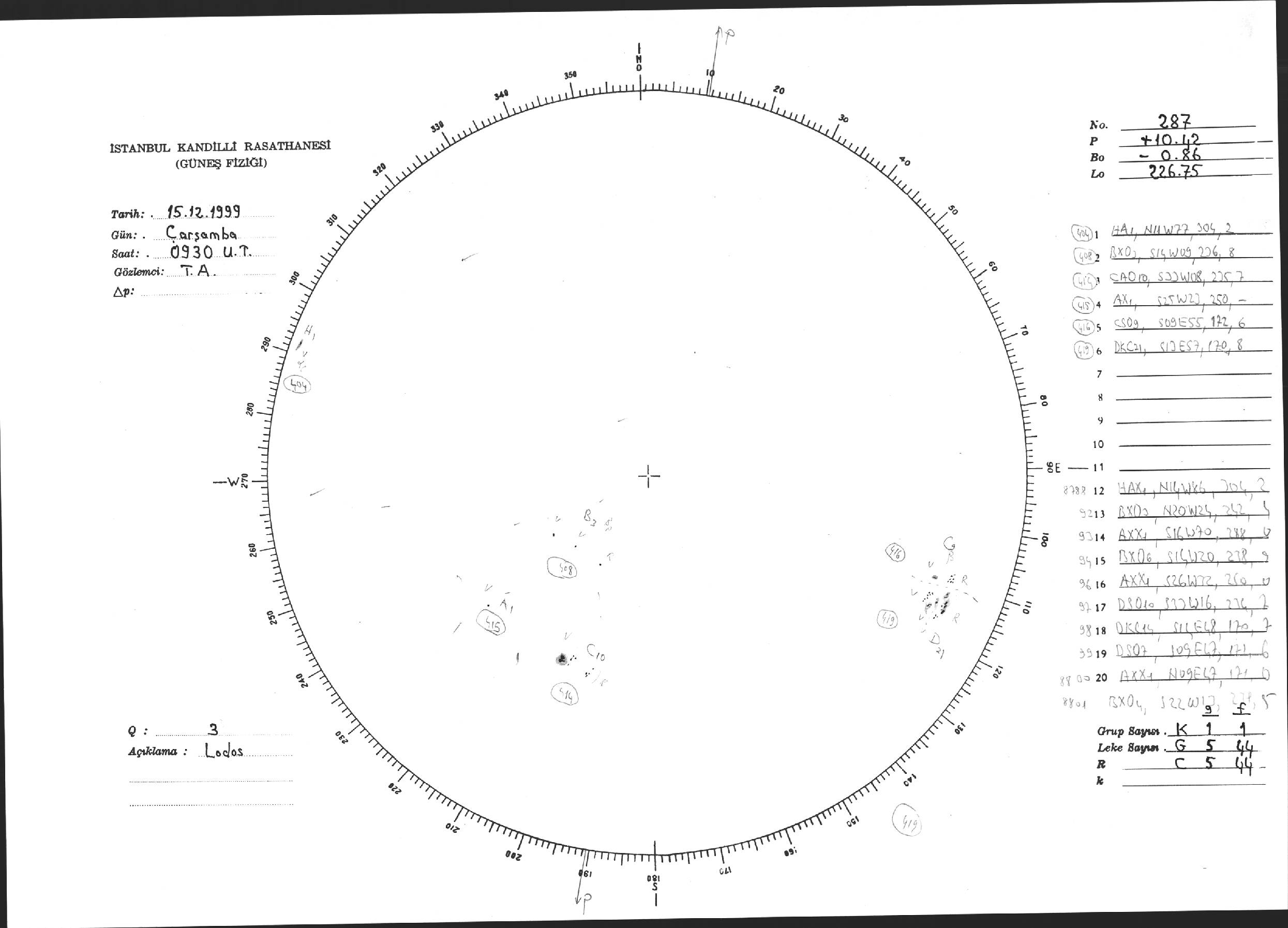 Güneş Lekesi Çizimi - 15.12.1999
