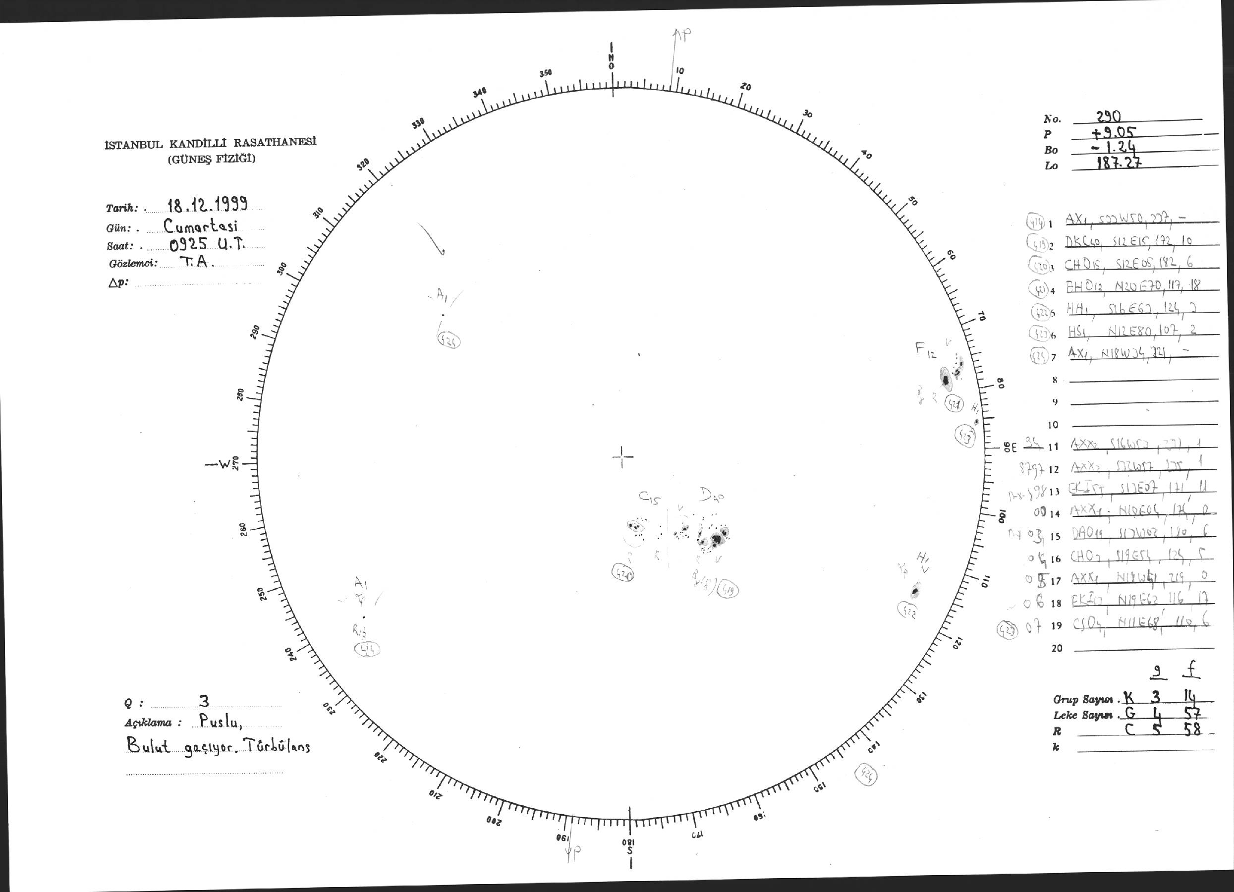 Güneş Lekesi Çizimi - 18.12.1999