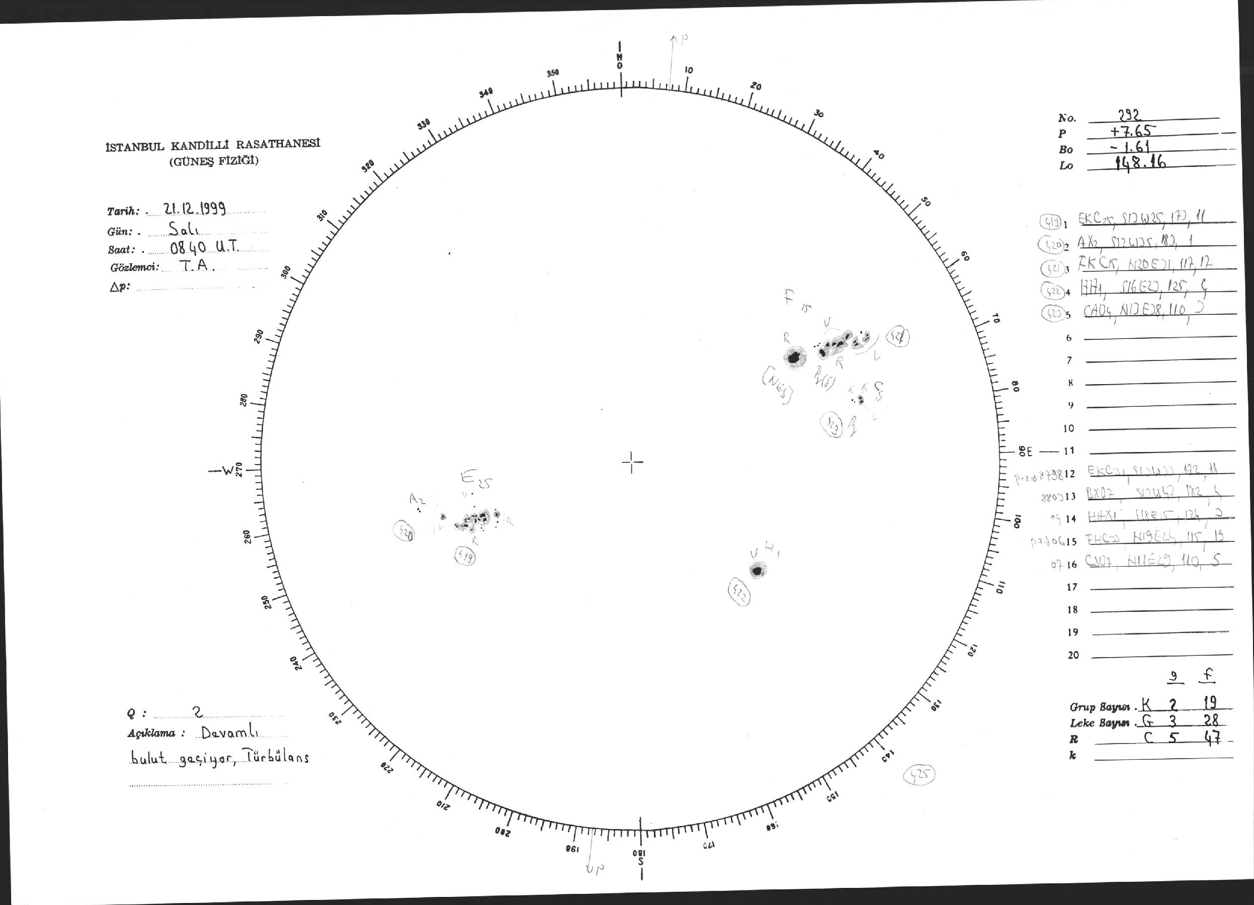 Güneş Lekesi Çizimi - 21.12.1999