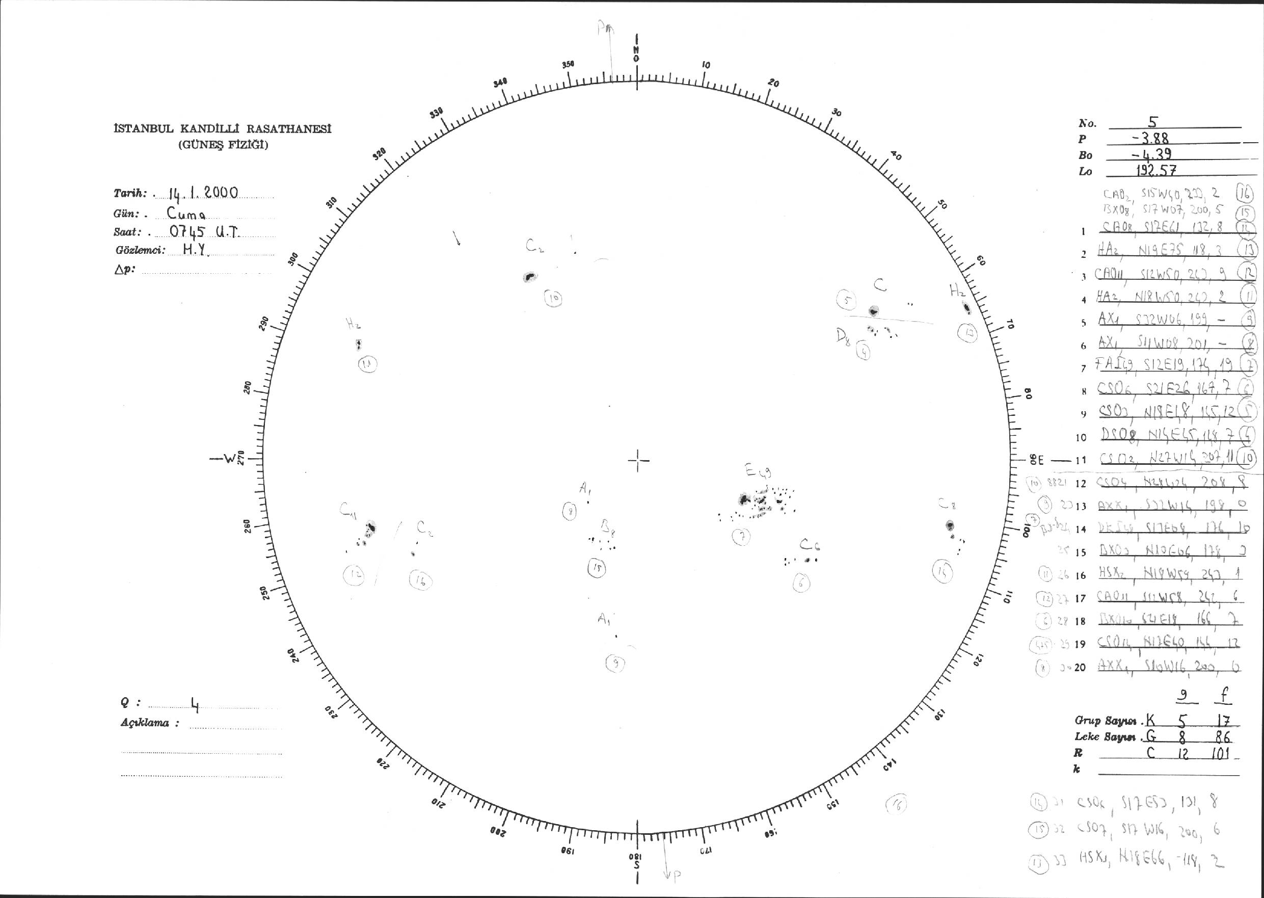 Güneş Lekesi Çizimi - 14.01.2000